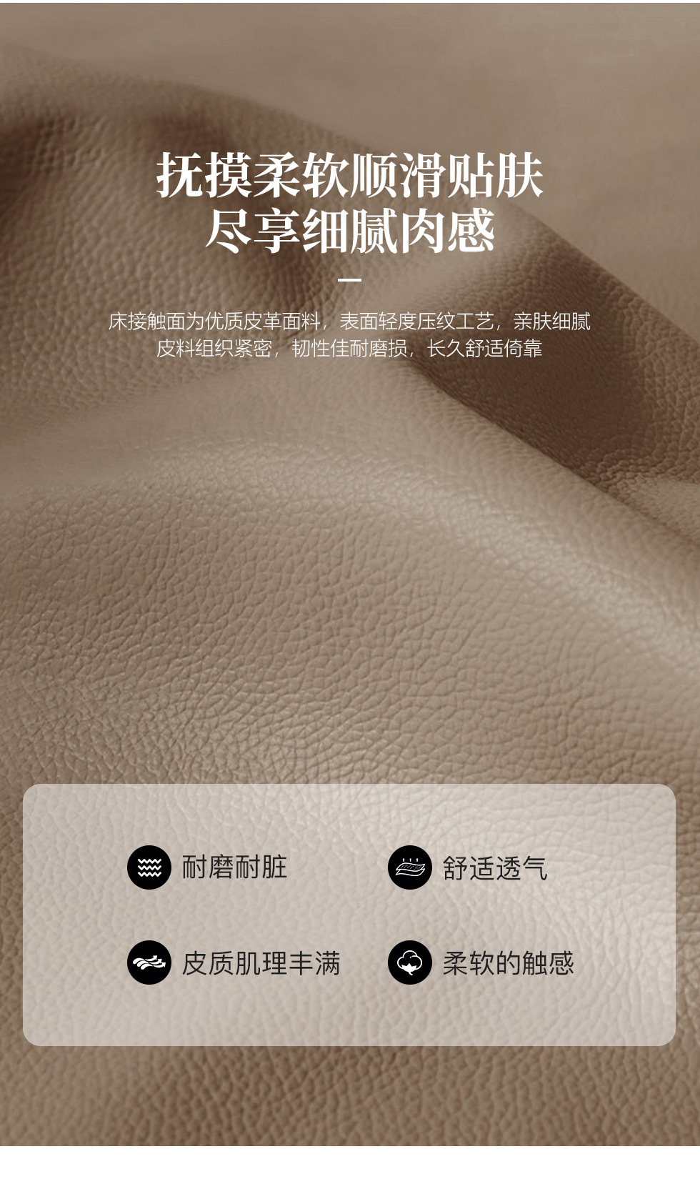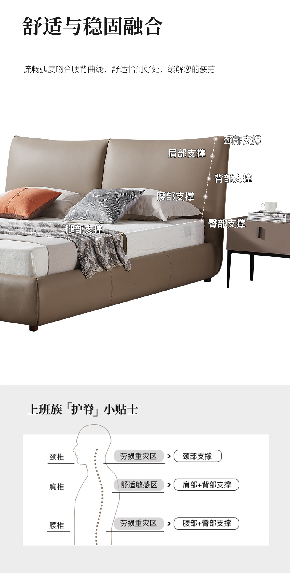 e家优选 现代简约 接触面头层牛皮 松木 实木多层板 九孔纤维棉 咖灰色 1.8米皮床¥3875