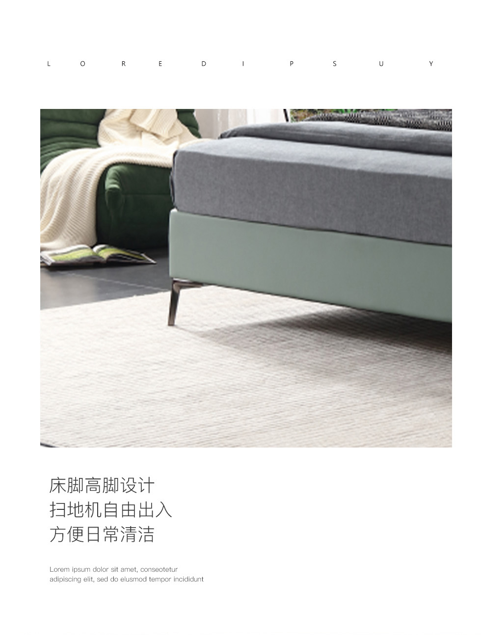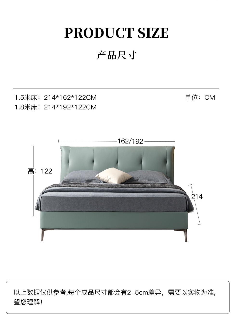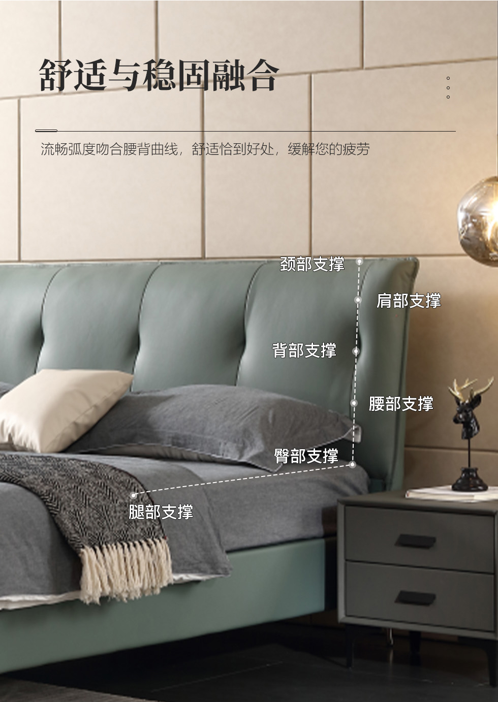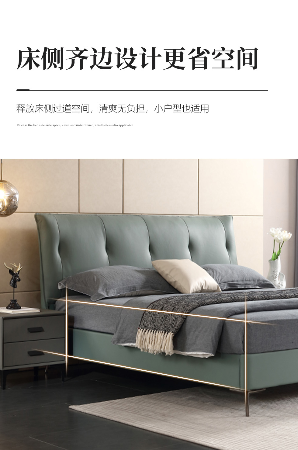 e家优选 极简 接触面靠包真皮 松木 实木多层板 九孔纤维棉 绿色 1.8米皮床¥3849
