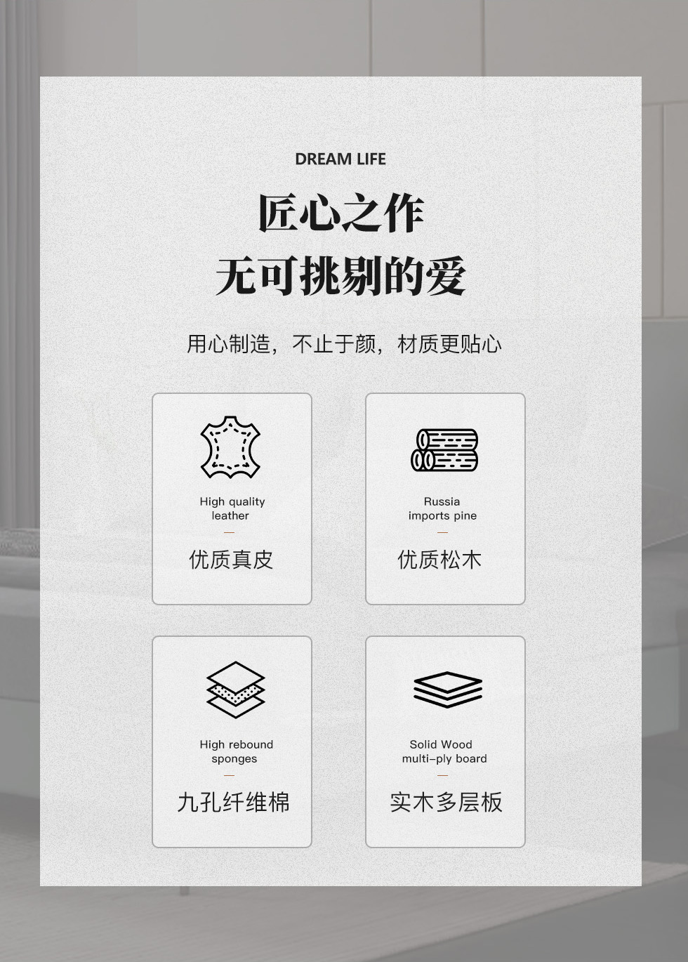 e家优选 现代简约 接触面头层牛皮 松木 实木多层板 九孔纤维棉 咖灰色 1.8米皮床¥3875
