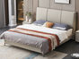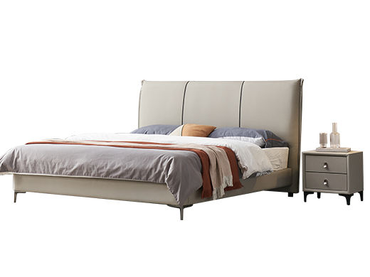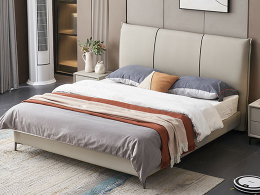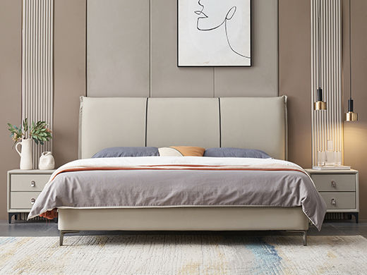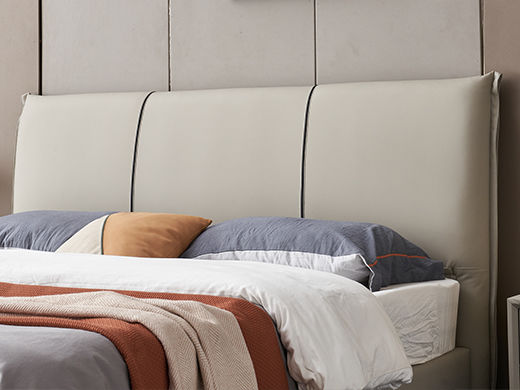 A系优选 现代简约 生态皮 框架:全实木框架+多层实木板 9公分盒子边 静音床板 米白色 1.8米床+两个床头柜(价格不含高箱,如需定制请咨询客服)