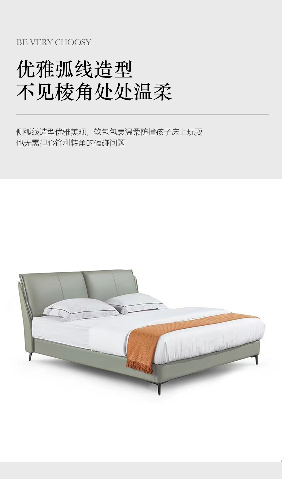 B系优选 现代简约 全实木框架 接触面头层牛皮 高密度海绵 1.8米床(价格不含高箱,如需定制请咨询客服)¥5126
