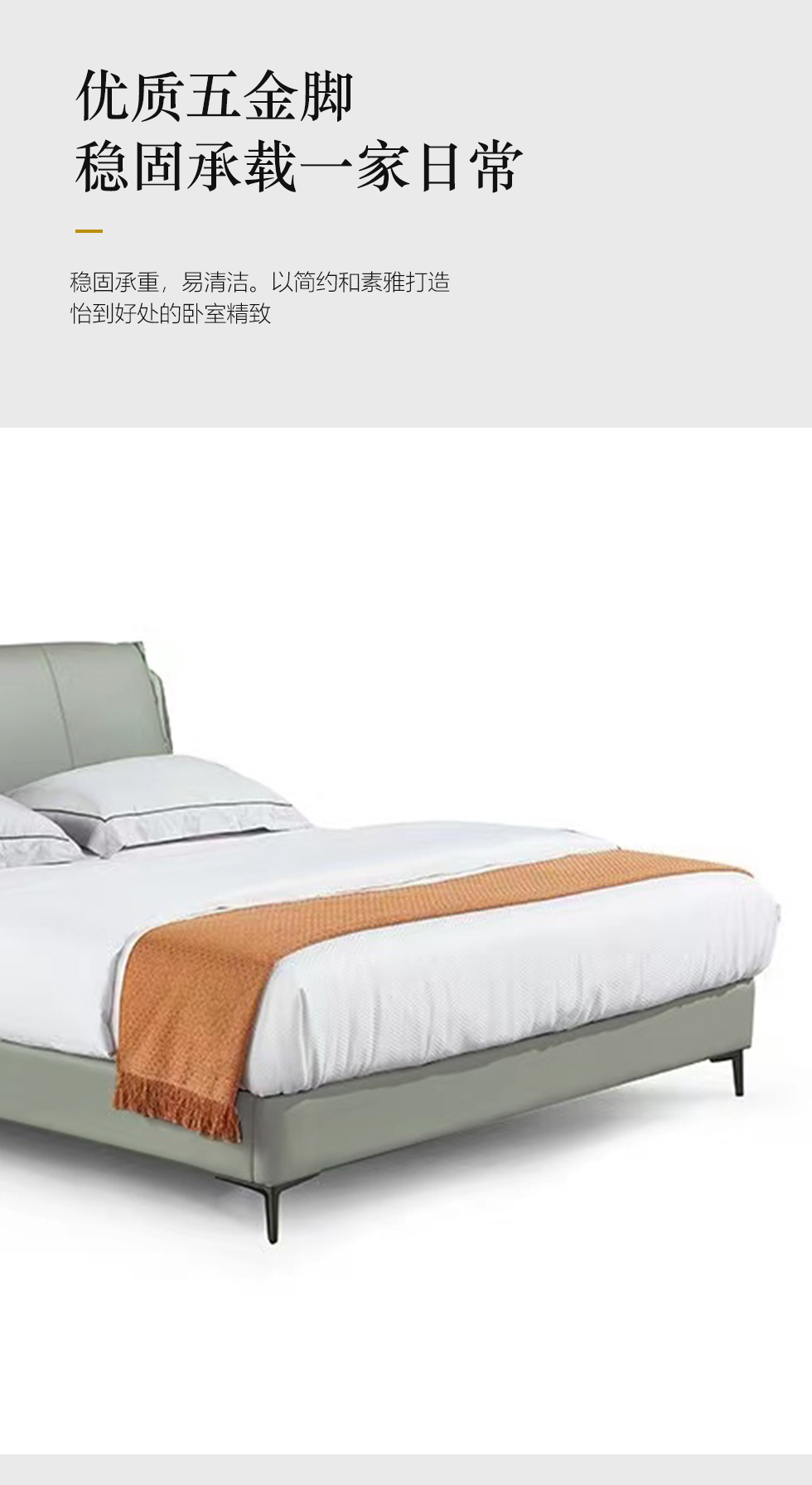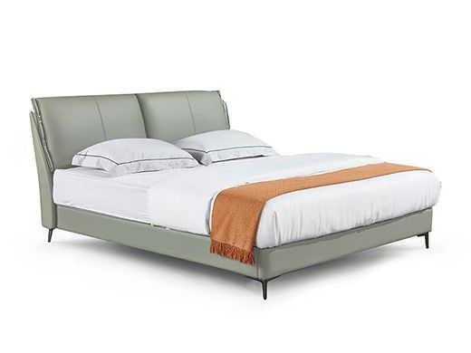 非凡工艺 现代简约 接触面真皮+仿皮+木框架高密 度回弹海绵+静音防滑实木十分排骨条+五金脚+静音条 浅绿色 1.8米 真皮软床