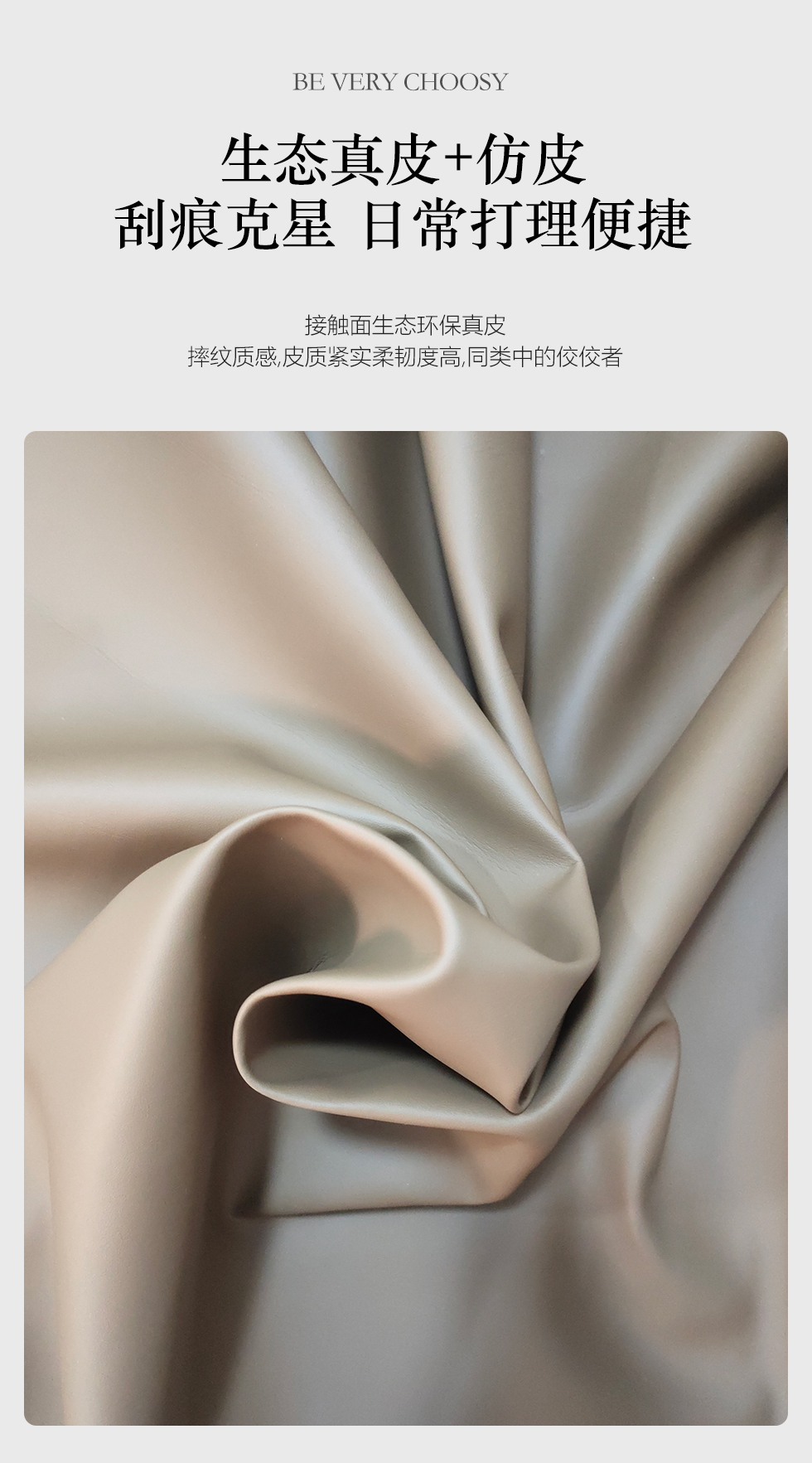 B系优选 极简 接触面真皮+仿皮+木框架高密 度回弹海绵+静音防滑实木十分排骨条+五金脚+静音条 卡其色 1.5米 真皮软床(价格不含高箱,如需定制请咨询客服)