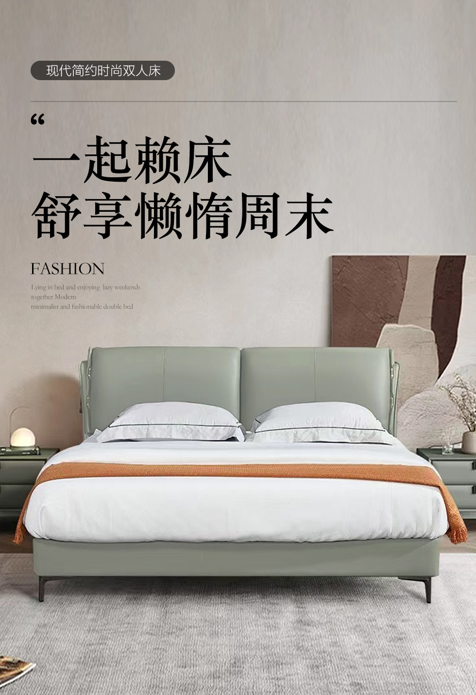 B系优选 轻奢 高端仿真皮+PVC 十公分钢木排骨架+进口实木 1.8米床+两个床头柜(价格不含高箱,如需定制请咨询客服)¥5126