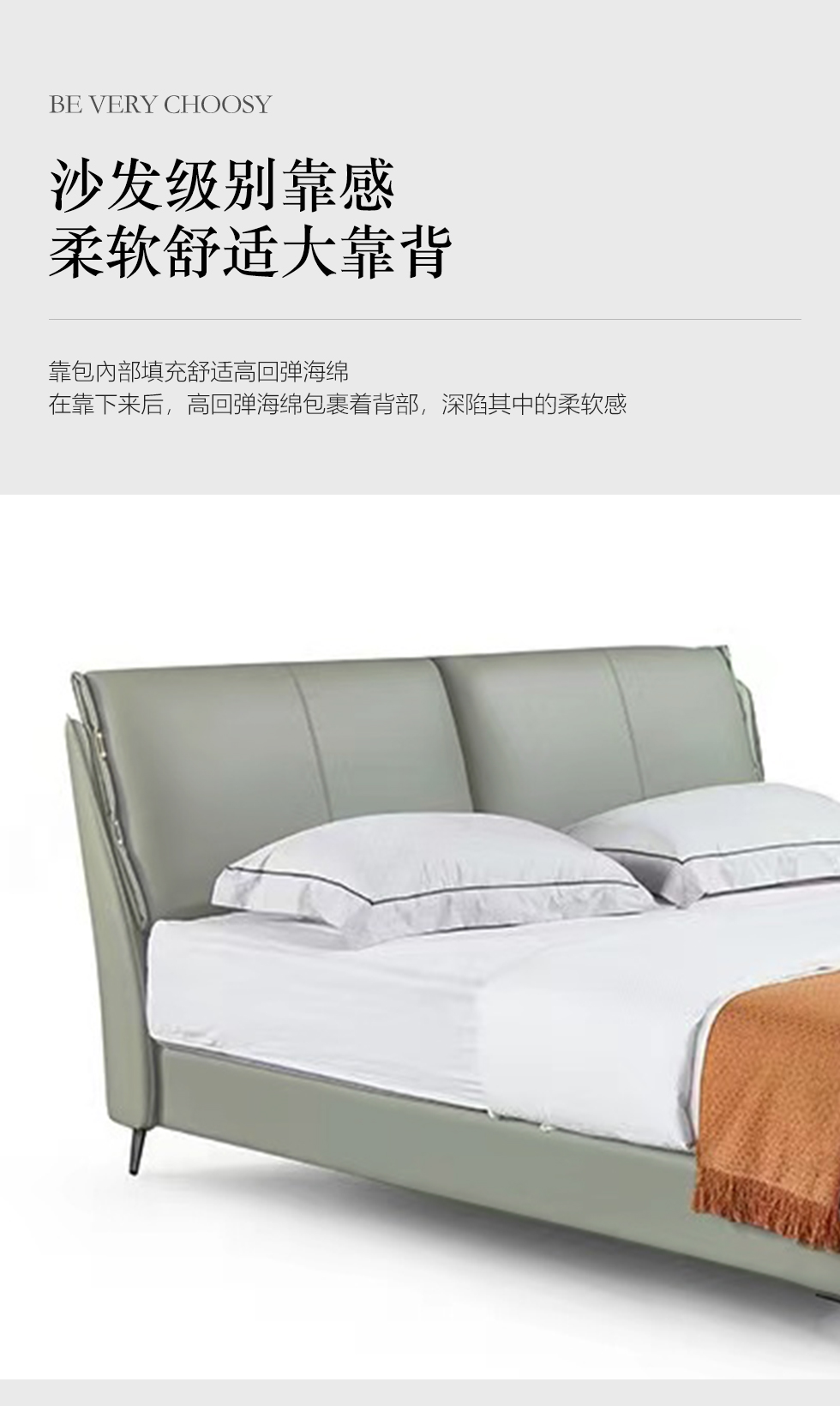 B系优选 现代简约 全实木框架 接触面头层牛皮 高密度海绵 1.8米床(价格不含高箱,如需定制请咨询客服)¥5126