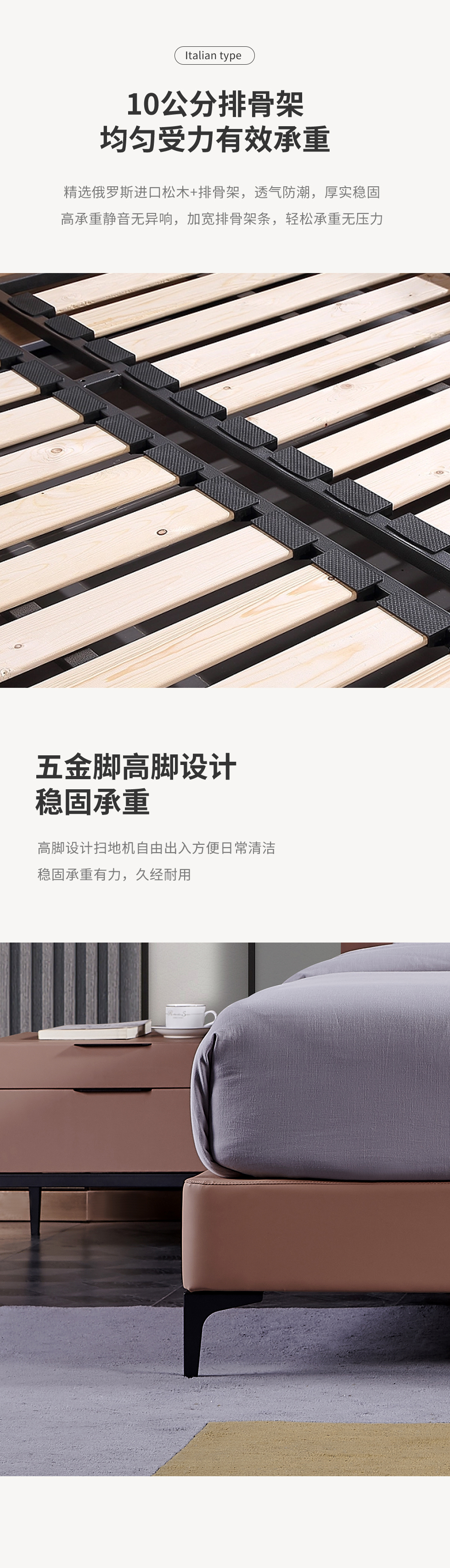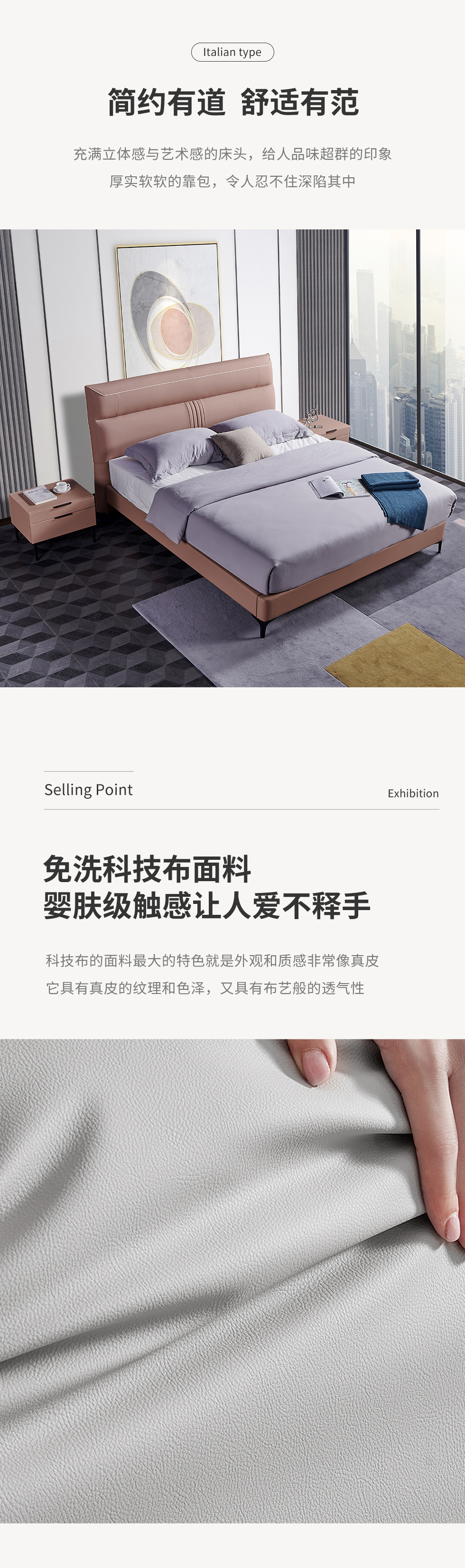 A系优选 现代简约 生态科技皮+实木框架+钢木排骨架+碳素钢金属脚 1.8米软床+2个床头柜(价格不含高箱,如需定制请咨询客服)¥3728
