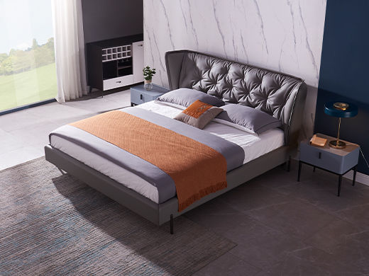 B系优选 现代简约 接触面头层牛皮+仿皮+高回弹海绵+实木框架+10分钢木排骨架+白蜡木床边 1.8米床1件商品搭配总价: