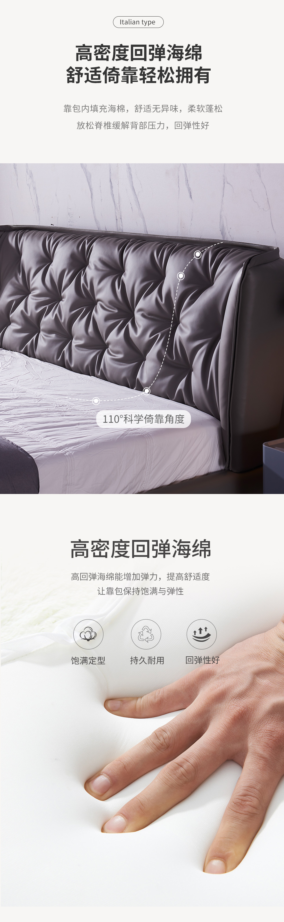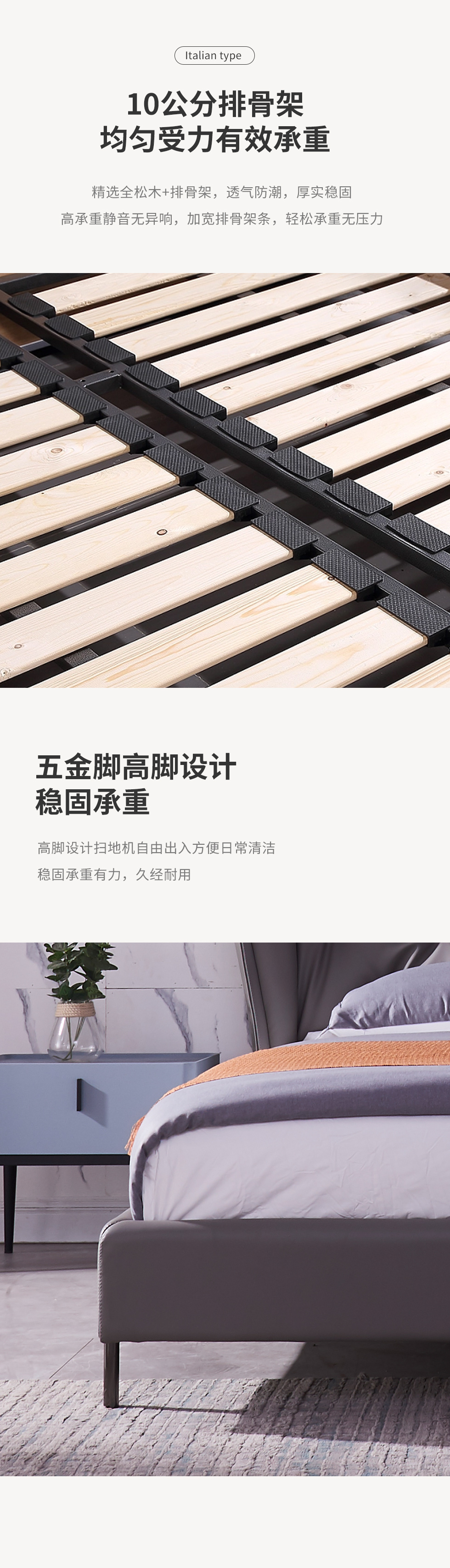 A系优选 现代简约 生态科技皮+实木框架+钢木排骨架+碳素钢金属脚 1.8米软床+2个床头柜(价格不含高箱,如需定制请咨询客服)¥3728