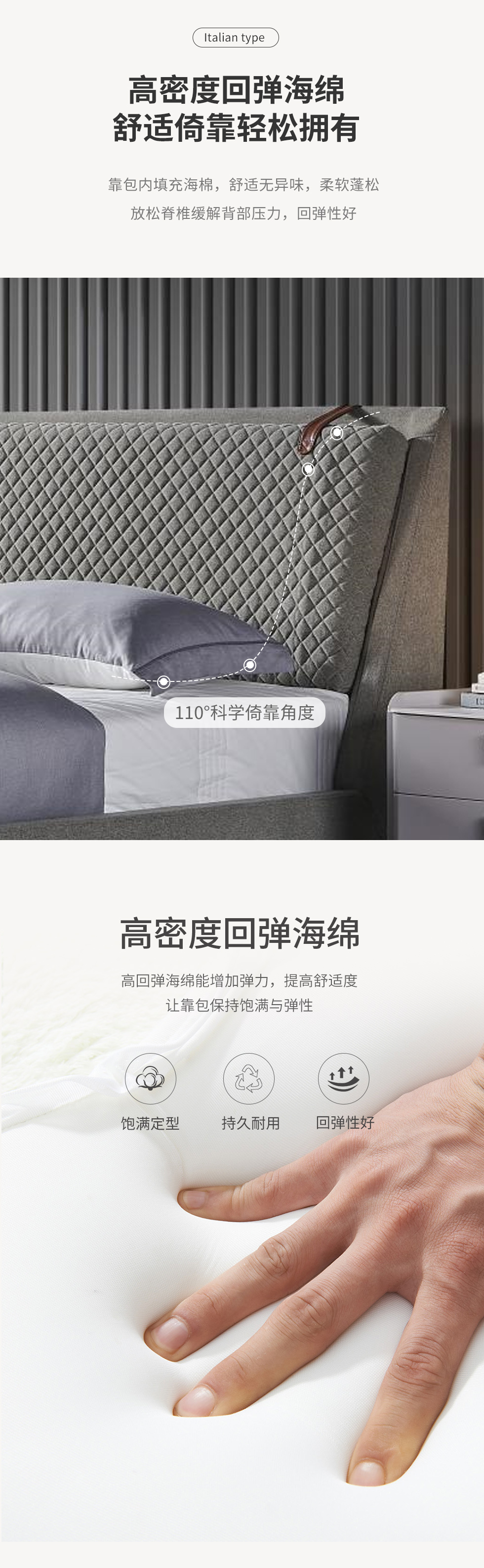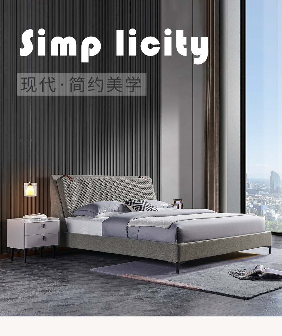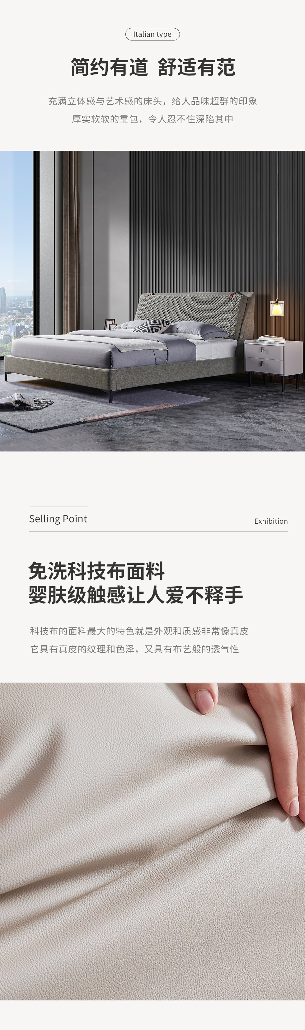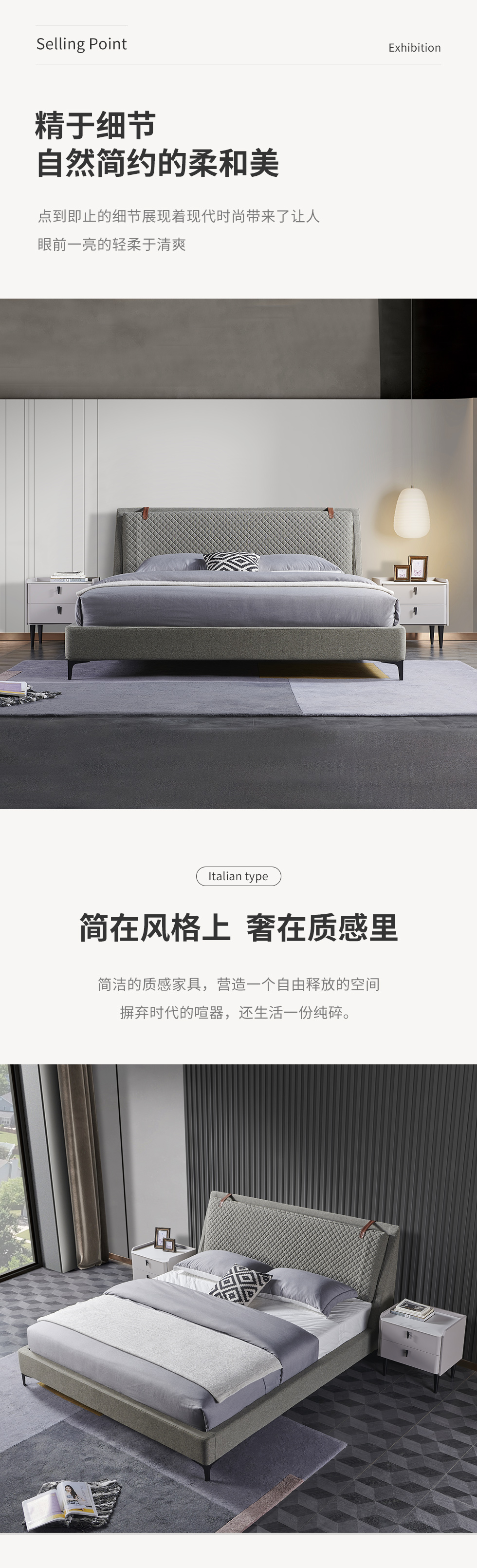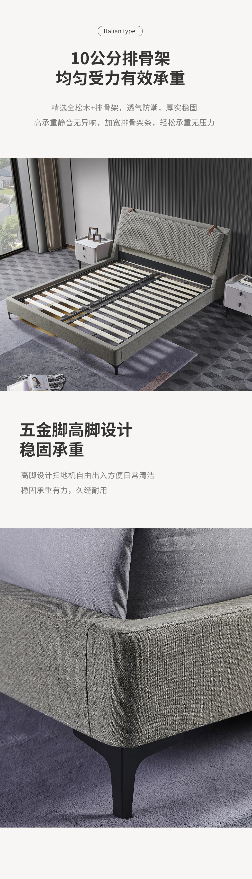 B系优选 现代简约 布艺+高密度海绵+实木框架+钢木排骨架+碳素钢金属脚 1.8米软床(价格不含高箱,如需定制请咨询客服)