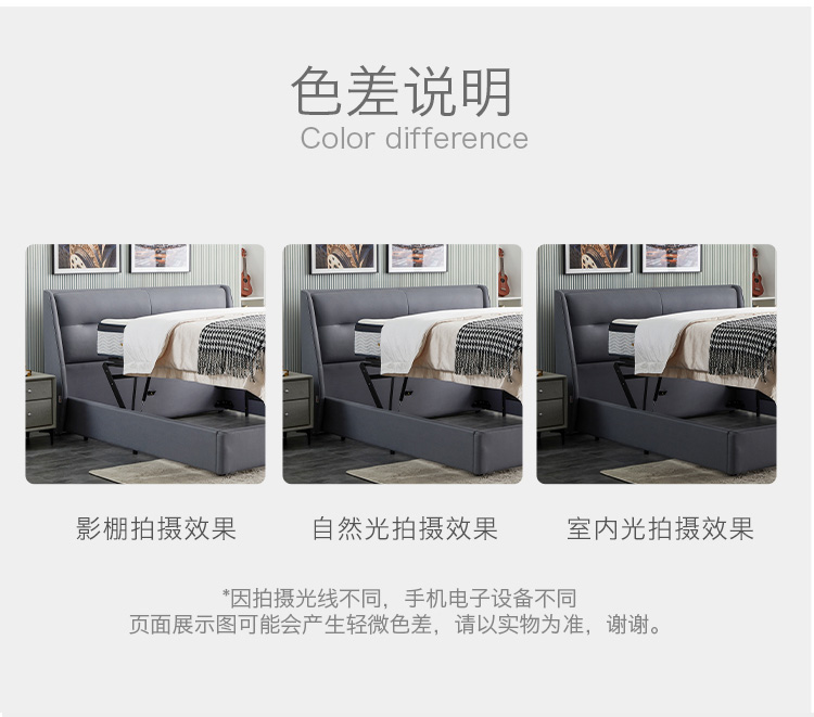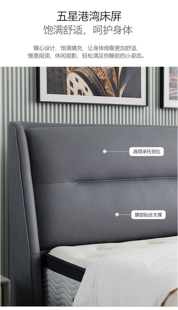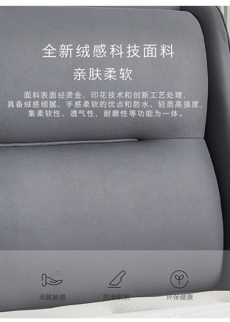 非凡工艺 现代简约 科技布+进口落叶松+多层实木板+高回弹海绵+碳素钢五金+10分钢木排骨架 浅灰色 1.8米床¥6414