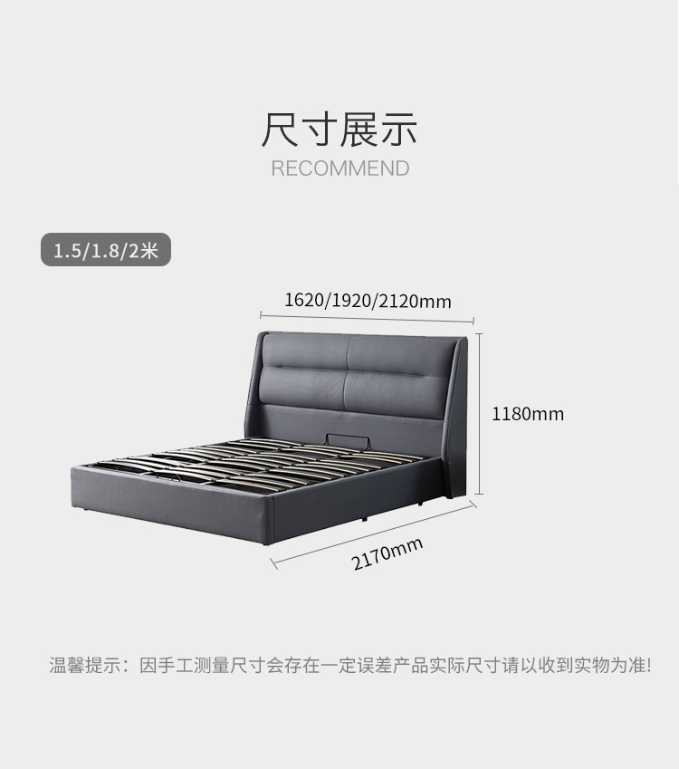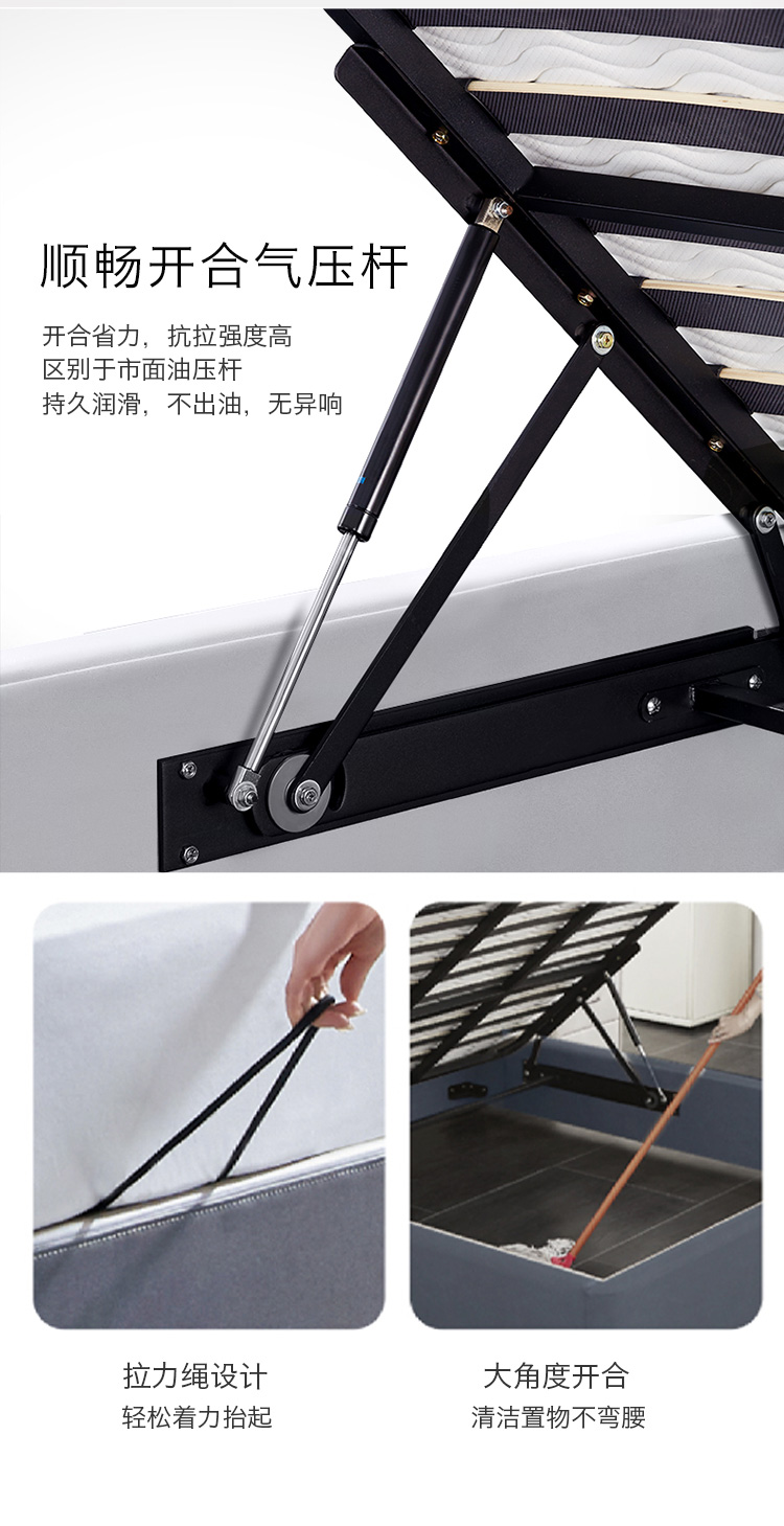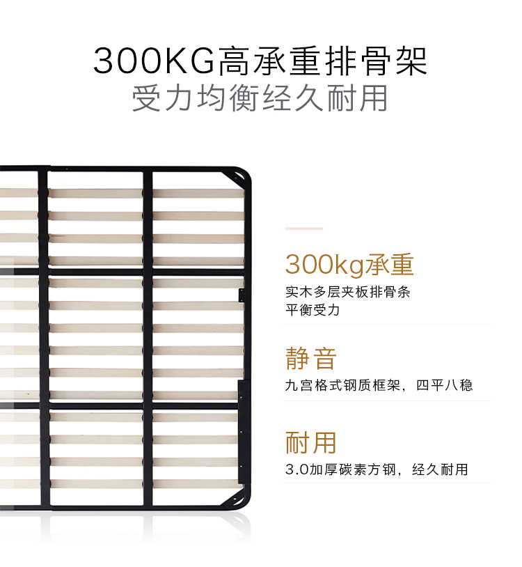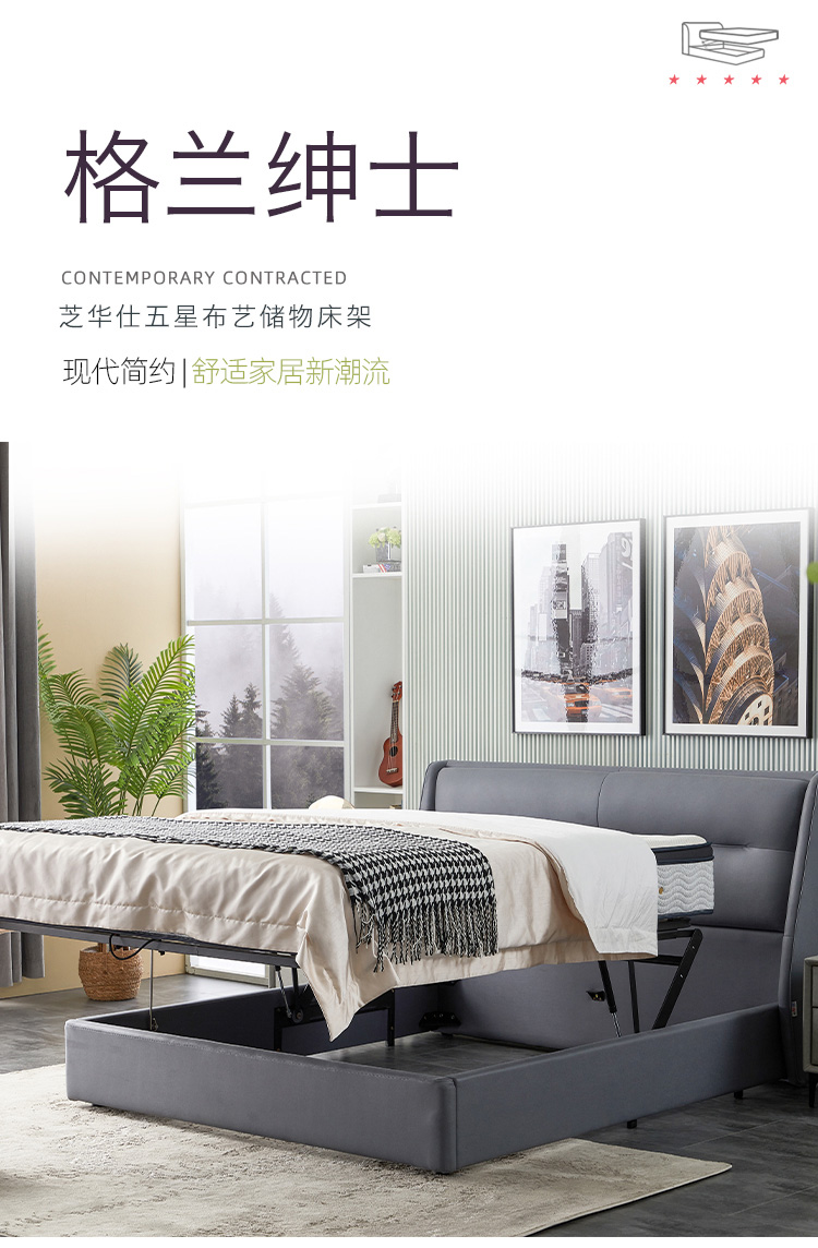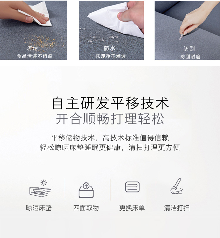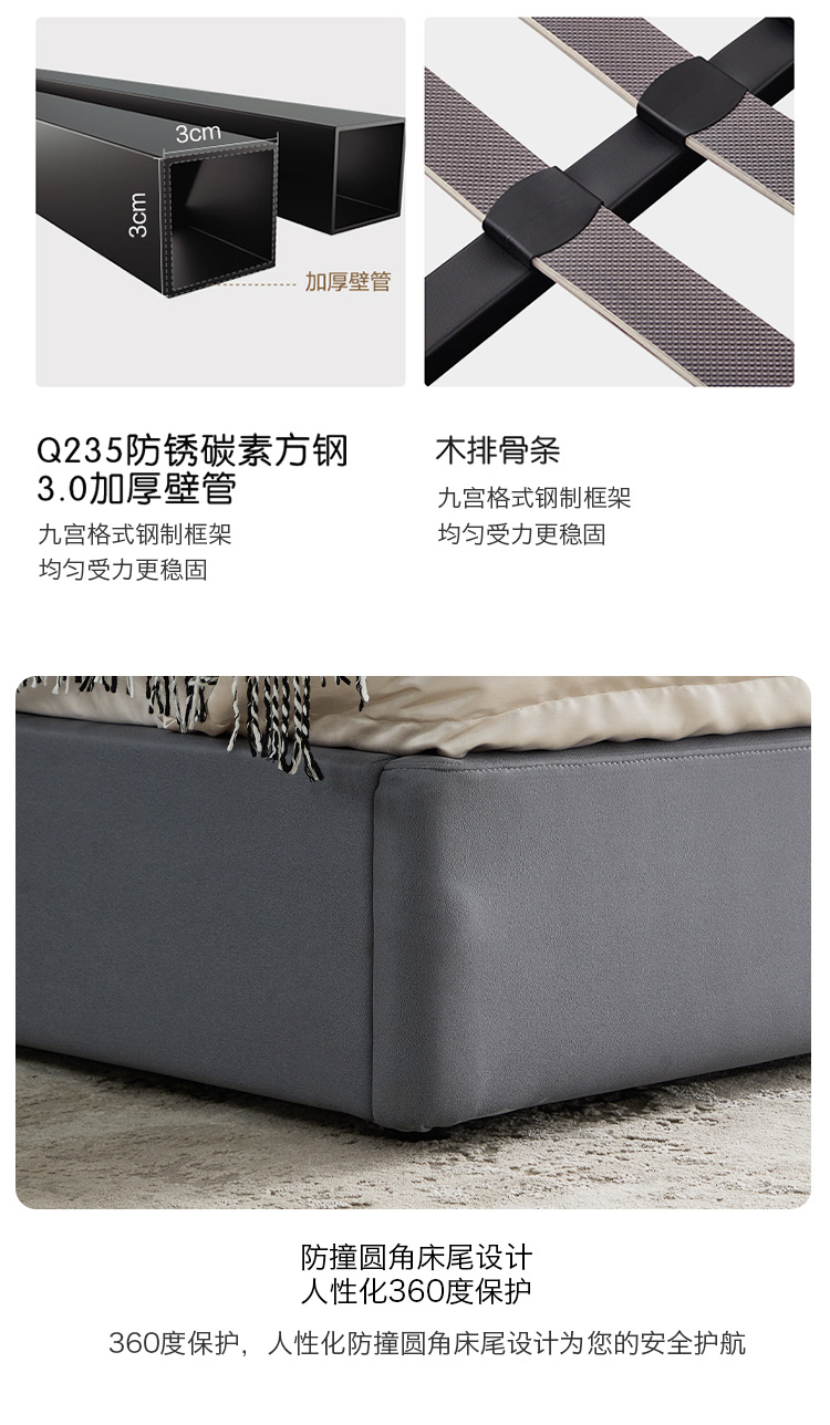 非凡工艺 现代简约 科技布+进口落叶松+多层实木板+高回弹海绵+碳素钢五金+10分钢木排骨架 浅灰色 1.8米床¥6414
