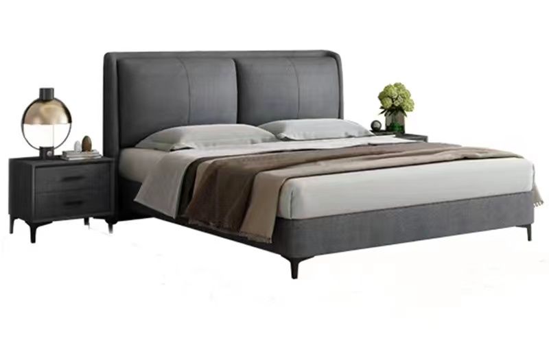 A系优选 现代简约 接触面头层牛皮真皮+实木框架+多层实木板+高回弹海绵+碳素钢五金脚+静音床板 深灰色 1.8米床(价格不含高箱,如需定制请咨询客服) |