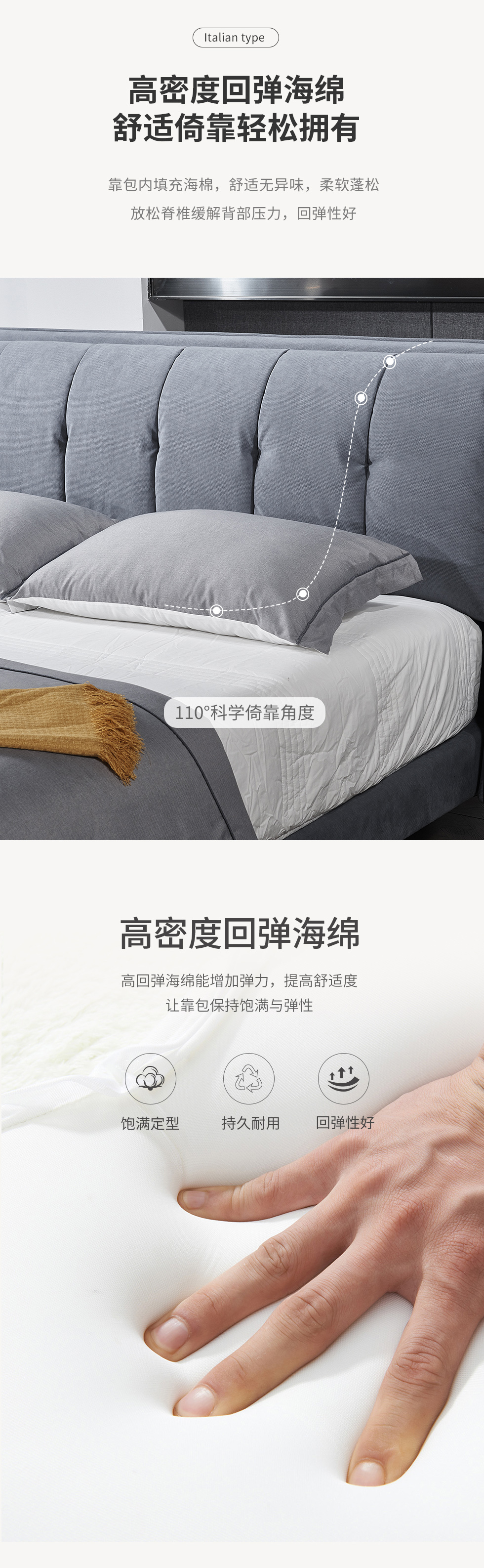 B系优选 现代简约 布艺+高密度海绵+实木框架+钢木排骨架+碳素钢金属脚 1.8米软床(价格不含高箱,如需定制请咨询客服)¥3728