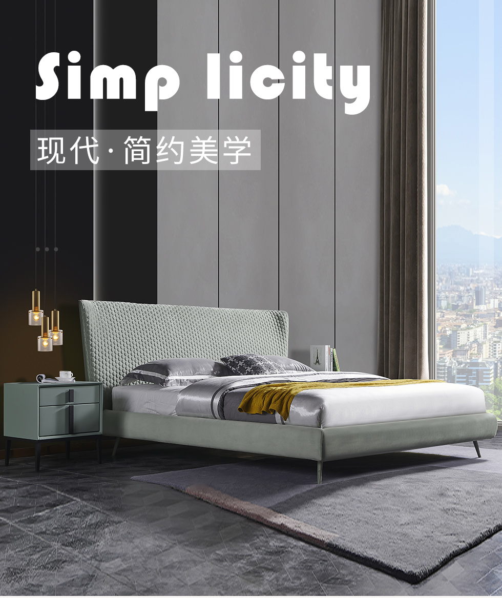 B系优选 现代简约 布艺+高密度海绵+实木框架+钢木排骨架+碳素钢金属脚 1.8米软床(价格不含高箱,如需定制请咨询客服)
