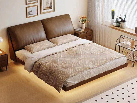 B系优选 中古风 接触面头层牛皮+仿皮+高回弹海绵+实木框架+10分钢木排骨架+白蜡木床边 1.8米床A系优选 极简 仿真皮+进口落叶松+多层实木板+高回弹海绵+碳素钢五金+10分钢木排骨架 浅咖色 1.8米悬浮床带灯(价格不含高箱,如需定制请咨询客服)