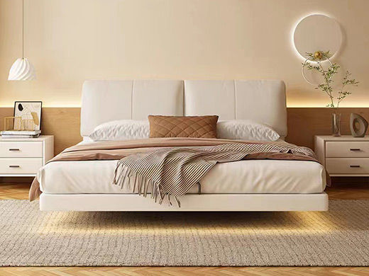 B系优选 现代简约 生态真皮+进口落叶松+多层实木板+高回弹海绵+碳素钢五金+10分钢木排骨架 米白 1.8米悬浮床带灯(价格不含高箱,如需定制请咨询客服) |