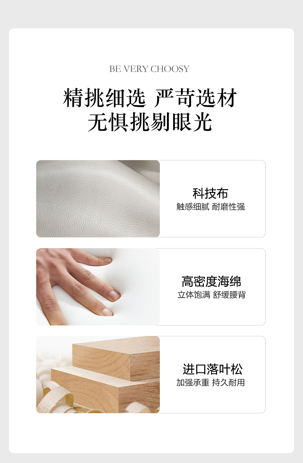 B系优选 现代简约 科技布+进口落叶松+多层实木板+高回弹海绵+碳素钢五金+10分钢木排骨架 米白 1.8米床(价格不含高箱,如需定制请咨询客服)