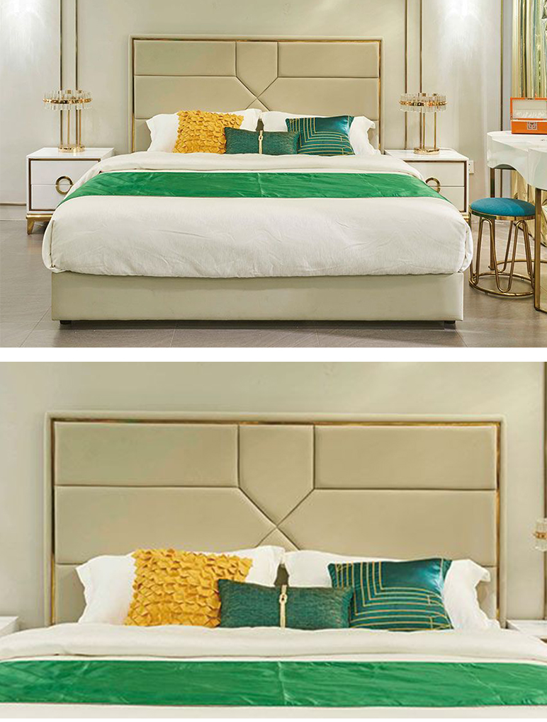 拉斐尔 轻奢 纳帕真皮+仿真皮+多层实木板+实木内架+电镀不锈钢五金+钢木排骨架 1.8米床¥6992