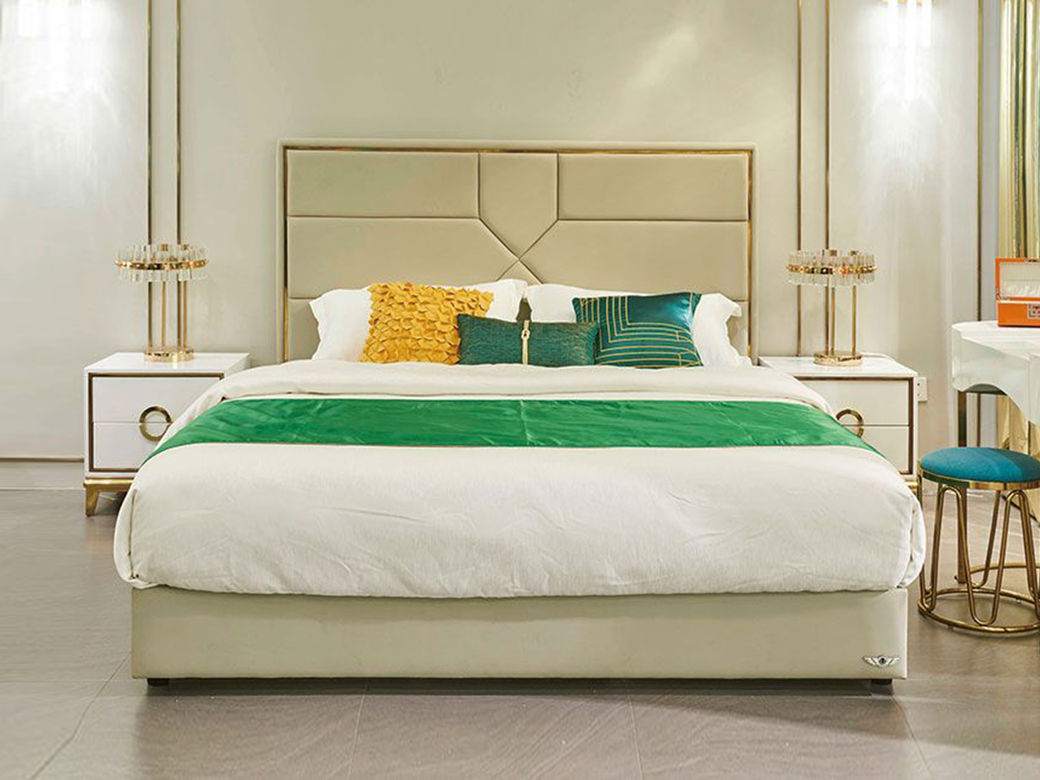拉斐尔 轻奢 仿真皮+多层实木板+实木内架+电镀不锈钢五金+高回弹海绵+钢木排骨架 1.8米床¥14309