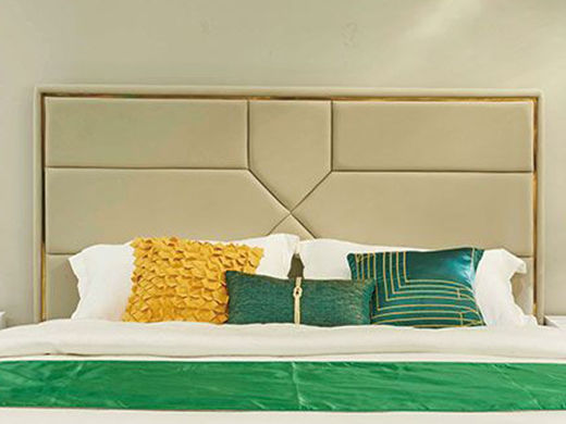 拉斐尔 轻奢 仿真皮+多层实木板+实木内架+电镀不锈钢五金+高回弹海绵+钢木排骨架 1.8米床
