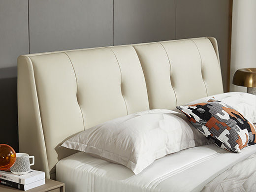 CBD家居 极简 床头接触面HE07+/HE02纳纤皮+其他HE07纳纤皮+东亚海绵+云杉木实木主框架+分体卷帘式排骨条 HE07浅绛色/HE02蜡白 1.5米床架