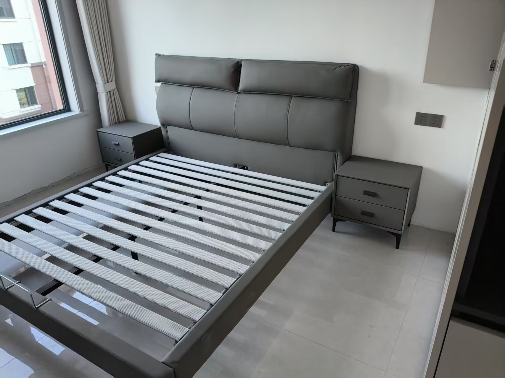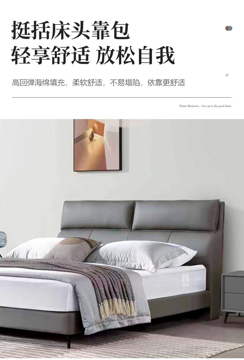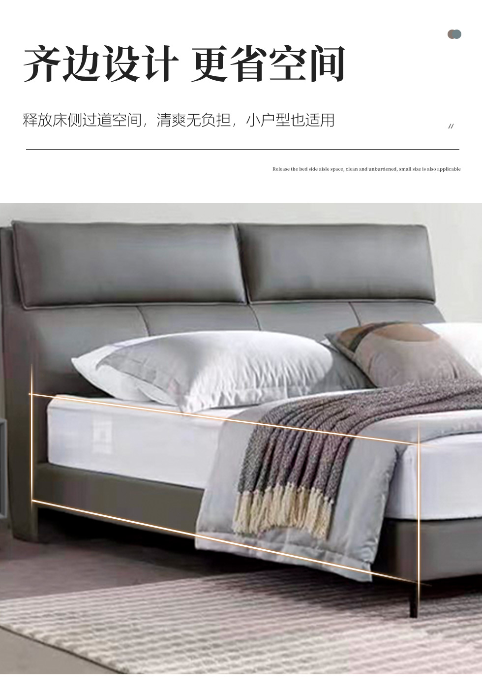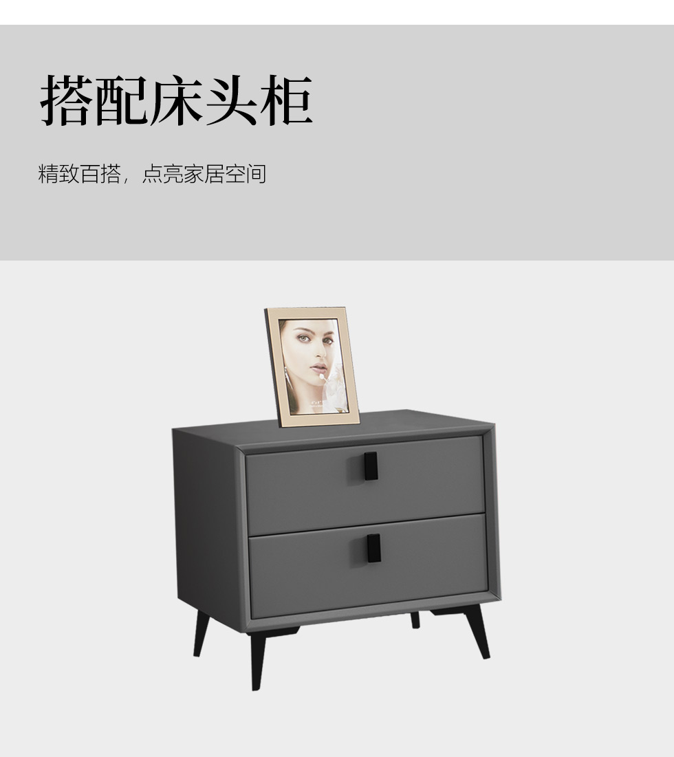 B系优选 现代简约 接触面真皮+高密度海绵+实木框架+钢木排骨架+碳素钢金属脚 1.8米软床+2个床头柜(价格不含高箱,如需定制请咨询客服)