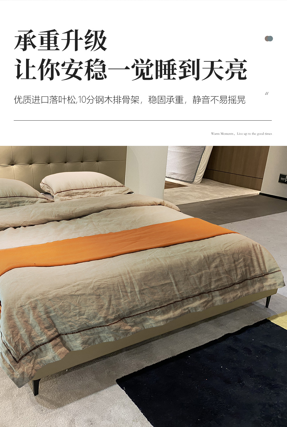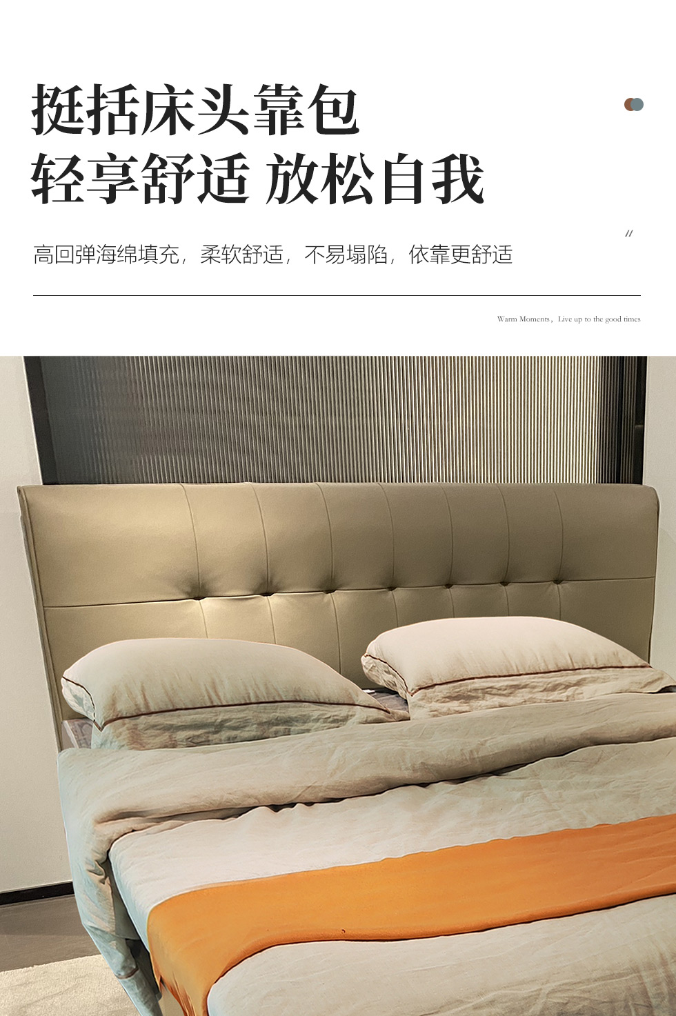 【套餐专享价】每屋优享系列 现代简约 接触面头层牛皮+仿皮+实木框架+钢木排骨架+胶脚 床头柜平面拉手/5分胶脚1.8米床+2床头柜¥3168