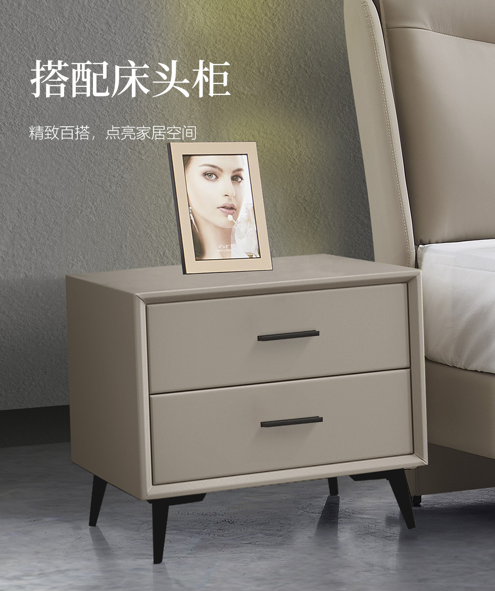 【套餐专享价】每屋优享系列 极简 接触面头层真皮+进口落叶松+多层实木板+高回弹海绵+碳素钢五金+10分钢木排骨架 1.8米床+2个床头柜