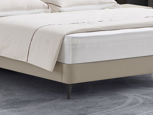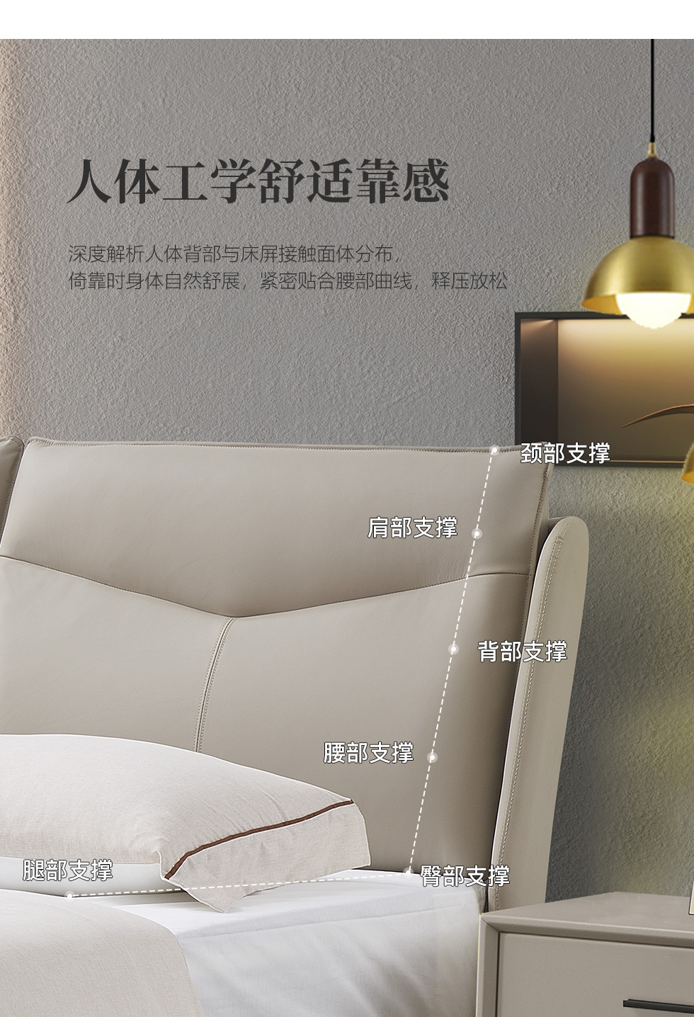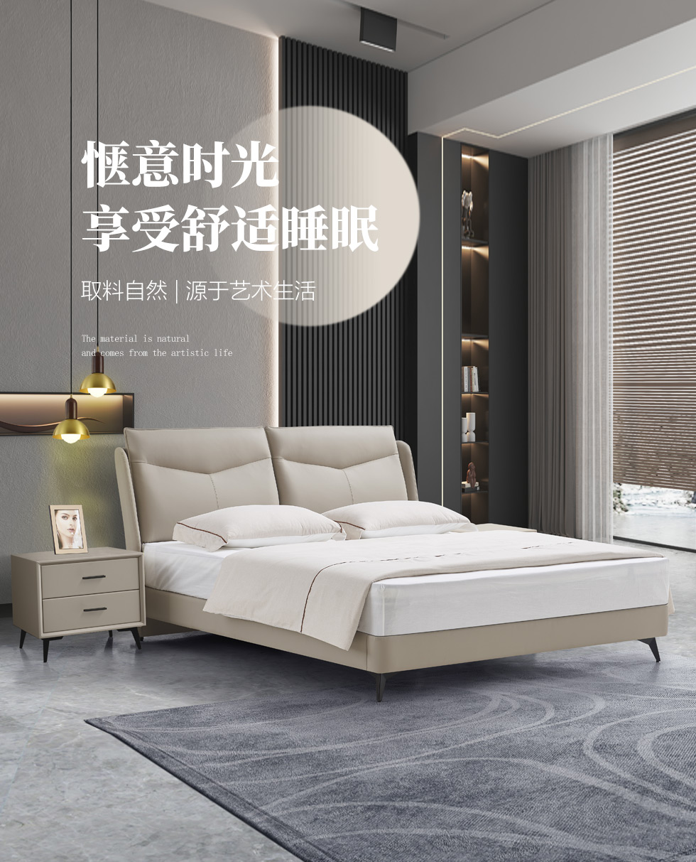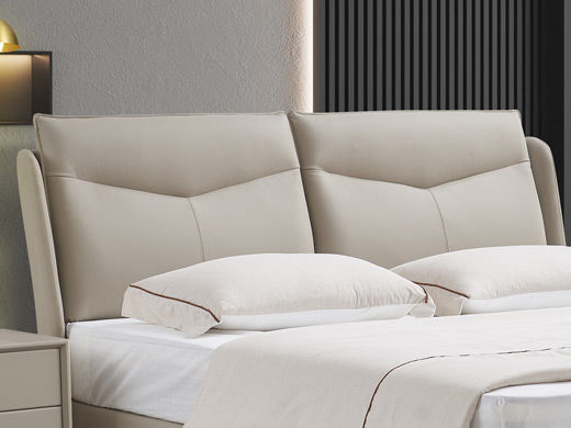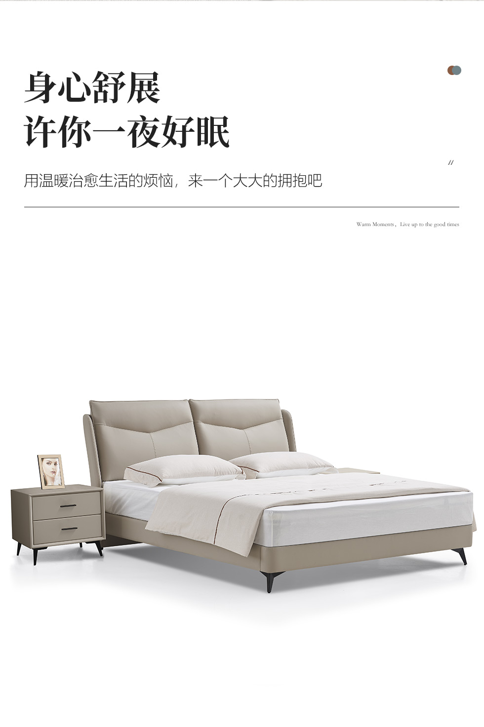 A系优选 极简 接触面头层真皮+进口落叶松+多层实木板+高回弹海绵+碳素钢五金+10分钢木排骨架 象牙白 1.8米床(价格不含高箱,如需定制请咨询客服)