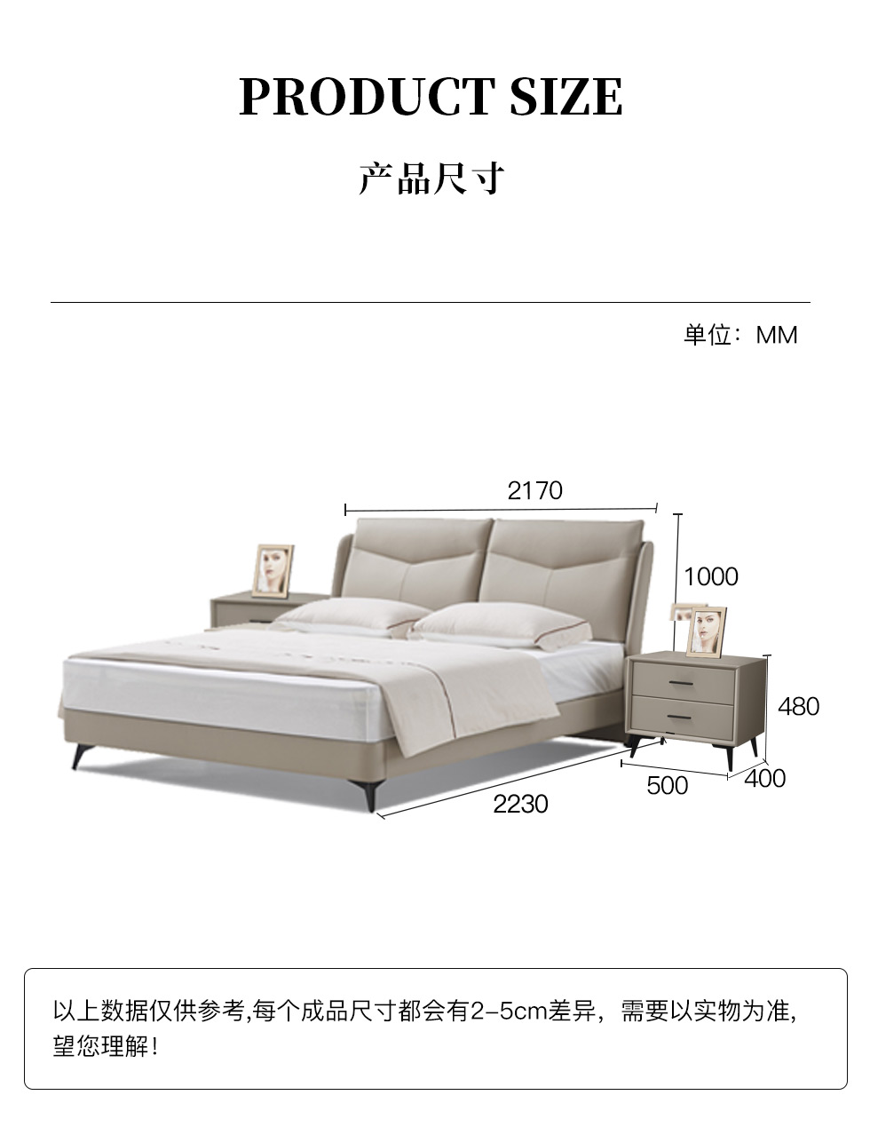 B系优选 极简 接触面头层真皮+进口落叶松+多层实木板+高回弹海绵+碳素钢五金+10分钢木排骨架 网红大象耳朵1.8米悬浮床带灯(价格不含高箱,如需定制请咨询客服)