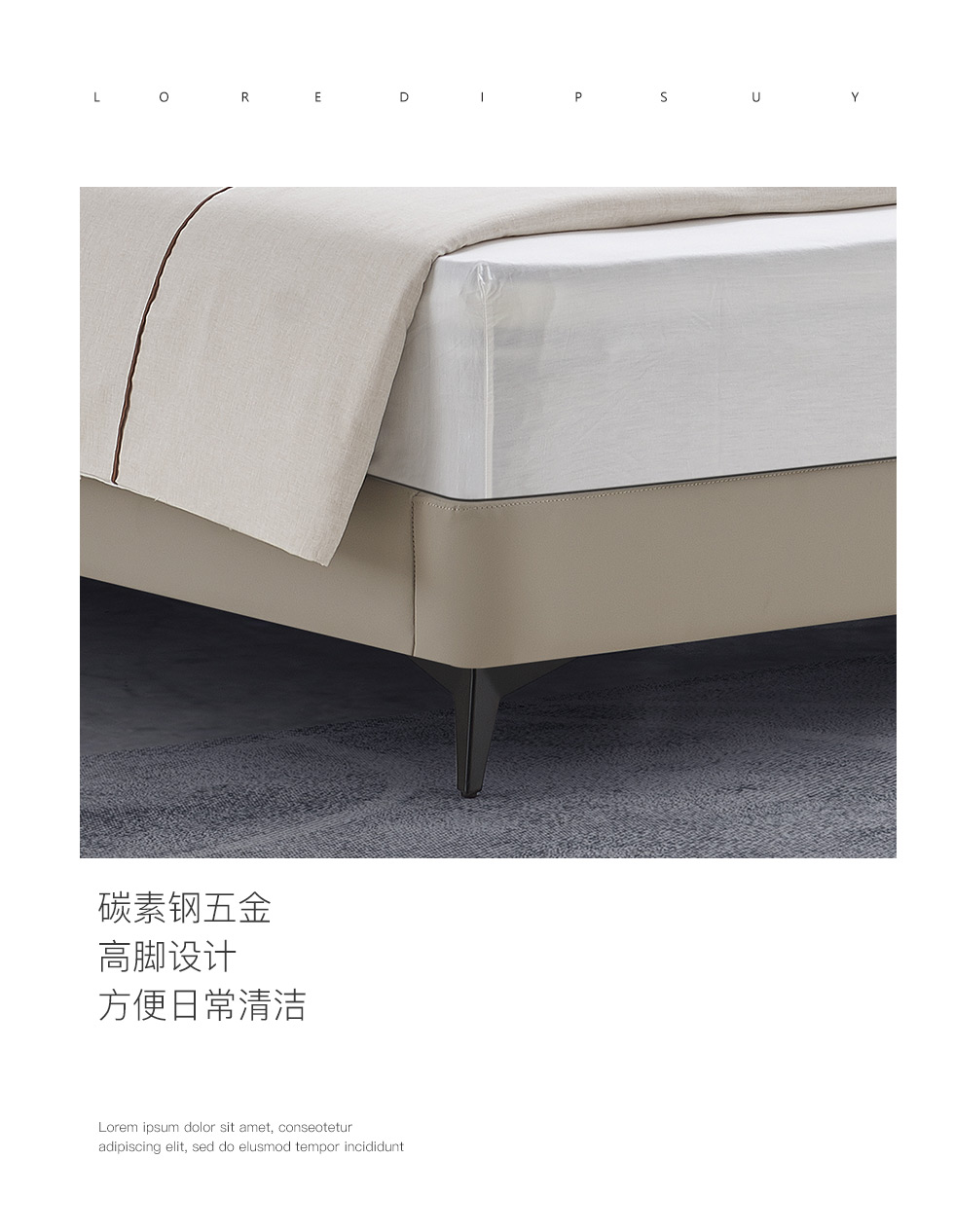A系优选 极简 接触面头层真皮+进口落叶松+多层实木板+高回弹海绵+碳素钢五金+10分钢木排骨架 水泥灰 1.8米床(价格不含高箱,如需定制请咨询客服)