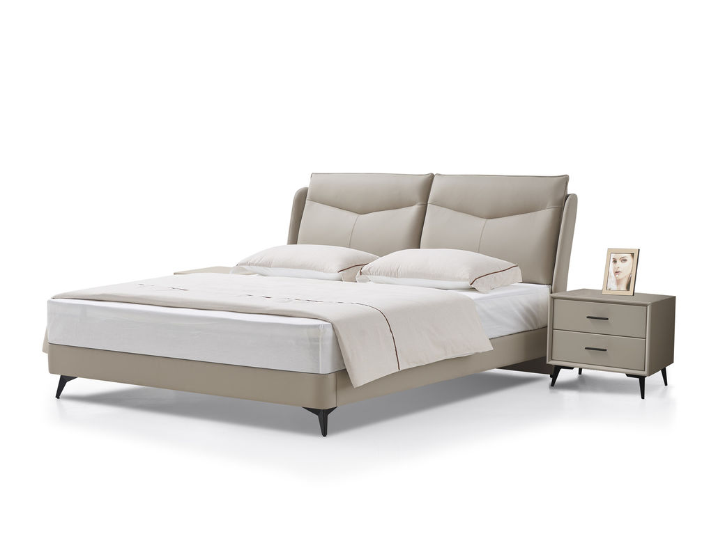 【套餐专享价】每屋优享系列 极简 接触面头层真皮+进口落叶松+多层实木板+高回弹海绵+碳素钢五金+10分钢木排骨架 1.8米床+2床头柜