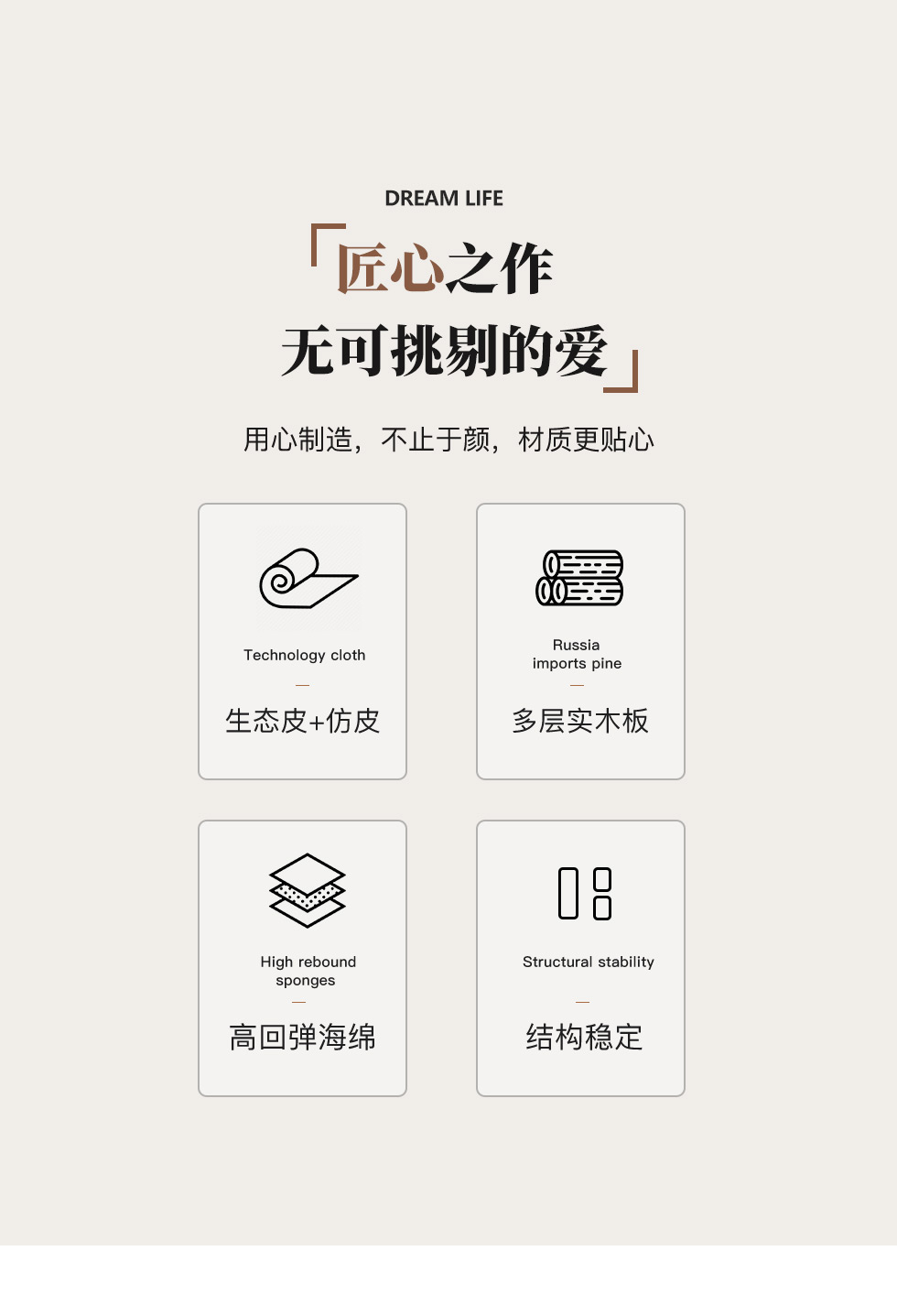 【套餐专享价】每屋优享系列 现代简约 生态皮+仿皮+多层实木板+高回弹海绵+实木内架+碳素钢五金+拆装排骨架 1.8米床