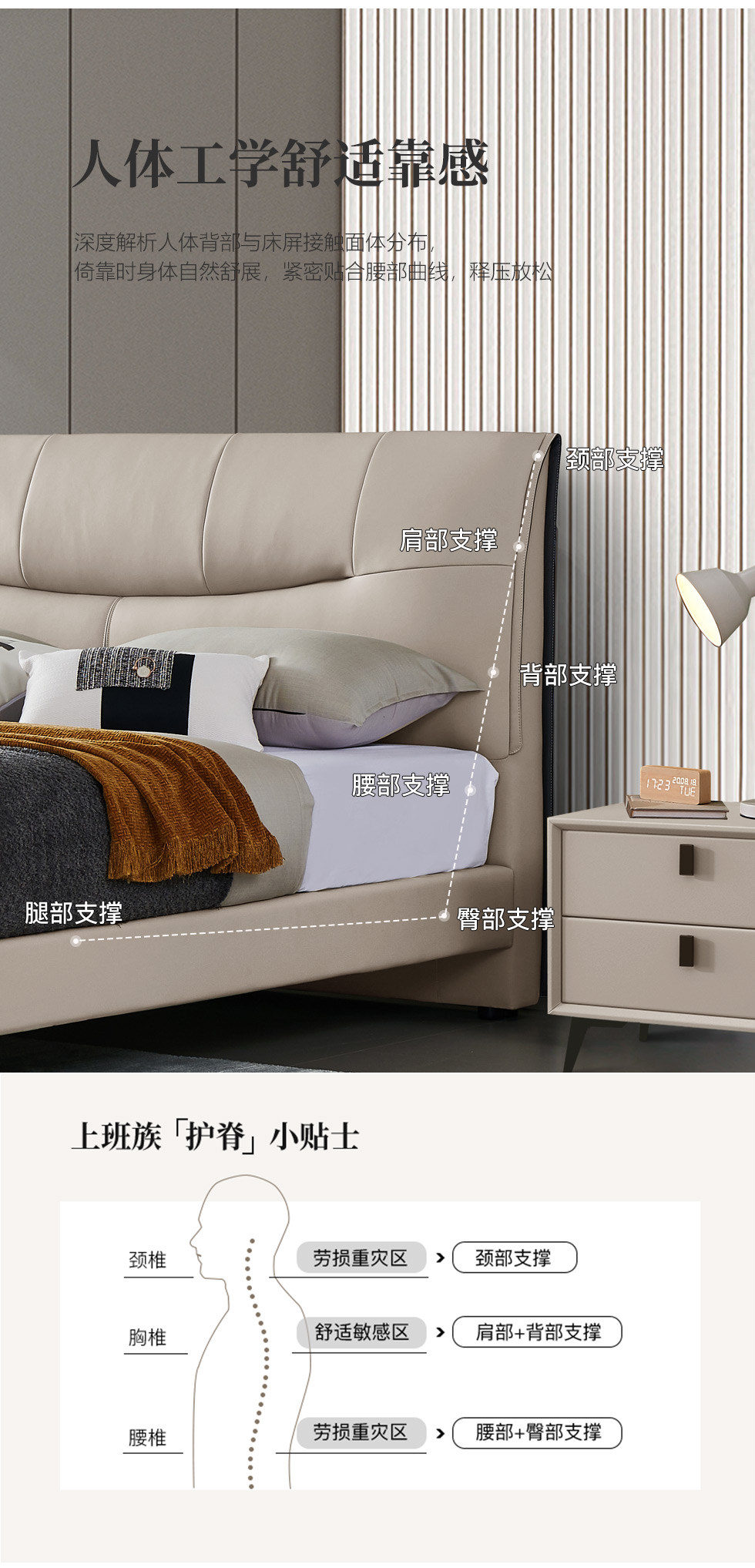 A系优选 现代简约 生态科技皮+实木框架+钢木排骨架+碳素钢金属脚 1.8米软床+2个床头柜(价格不含高箱,如需定制请咨询客服)