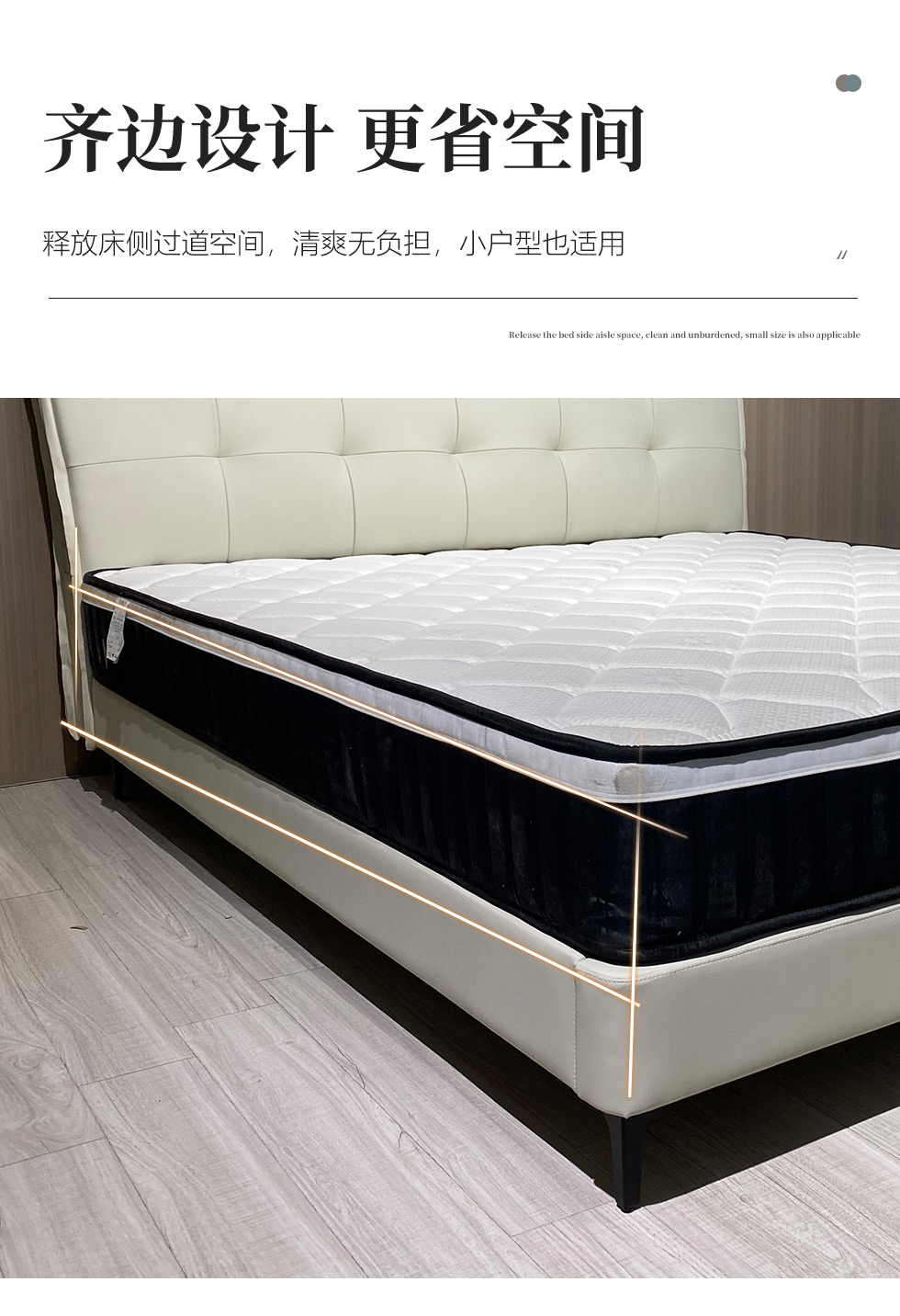 【套餐专享价】每屋优享系列 现代简约 接触面头层牛皮+仿皮+实木框架+钢木排骨架+胶脚 床头柜平面拉手/5分胶脚1.8米床+2床头柜¥3168