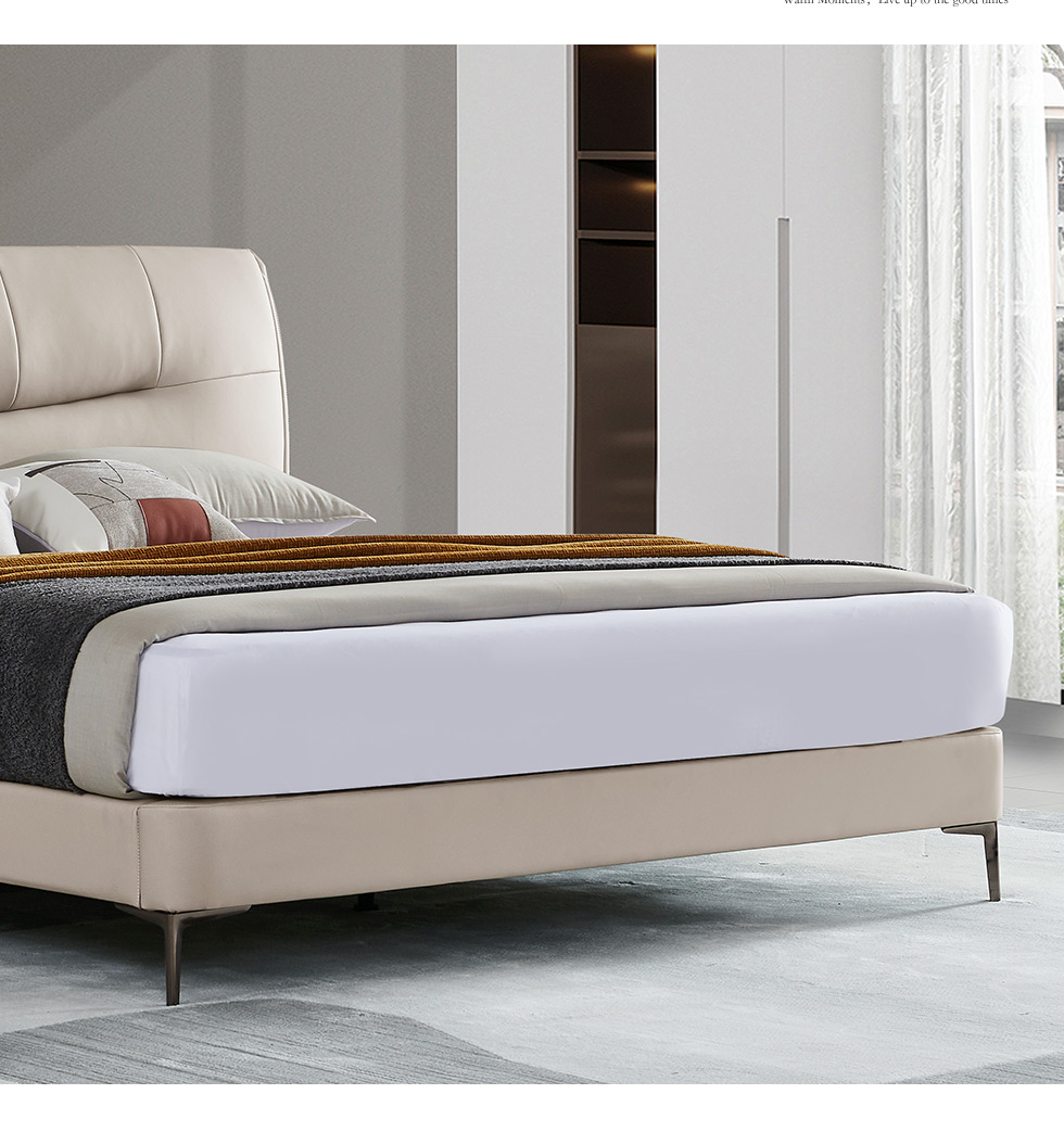 B系优选 现代简约 接触面真皮+高密度海绵+实木框架+钢木排骨架+碳素钢金属脚 1.8米软床+2个床头柜(价格不含高箱,如需定制请咨询客服)