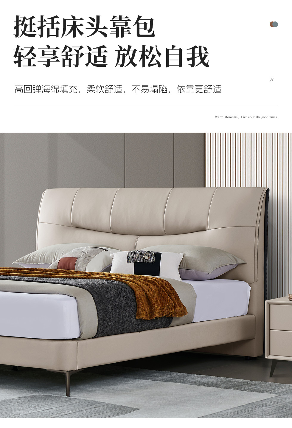 A系优选 现代简约 生态科技皮+实木框架+钢木排骨架+碳素钢金属脚 1.8米软床+2个床头柜(价格不含高箱,如需定制请咨询客服)