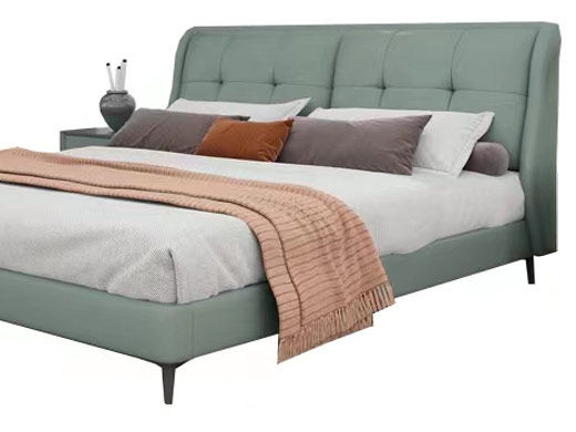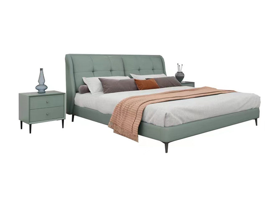 A系优选 现代简约 接触面头层牛皮真皮+实木框架+多层实木板+高回弹海绵+碳素钢五金脚+静音床板 浅绿色 1.8米床(价格不含高箱,如需定制请咨询客服)