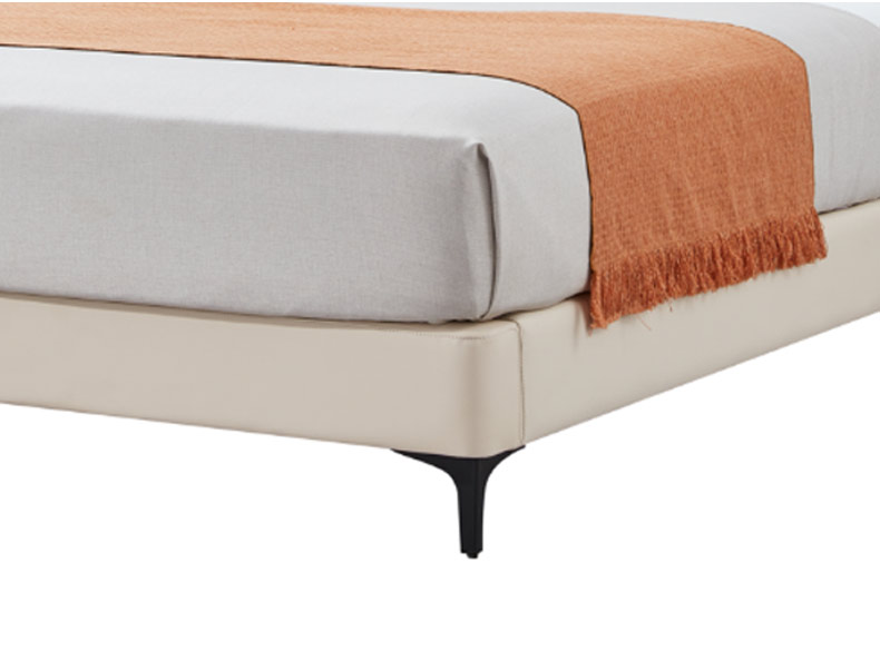 A系优选 现代简约 接触面头层牛皮真皮+实木框架+多层实木板+高回弹海绵+碳素钢五金脚+静音床板 米白色 1.8米床(价格不含高箱,如需定制请咨询客服)