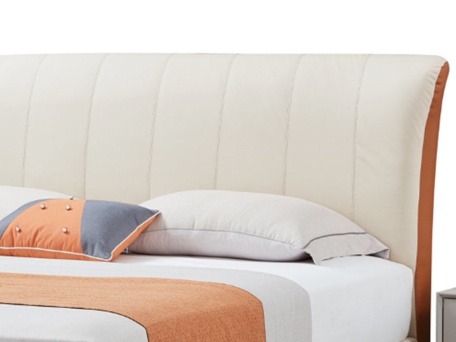 B系优选 现代简约 接触面头层牛皮+仿皮+高回弹海绵+实木框架+10分钢木排骨架+白蜡木床边 1.8米床