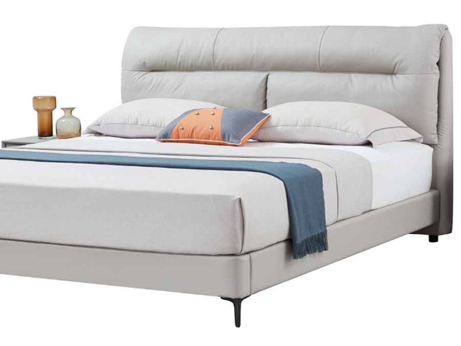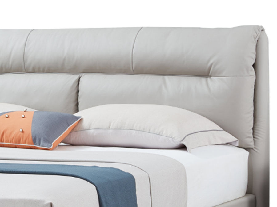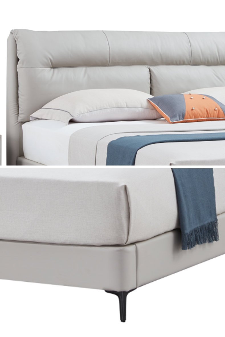 A系优选 现代简约 接触面头层牛皮真皮+实木框架+多层实木板+高回弹海绵+碳素钢五金脚+静音床板 米白色 1.8米床(价格不含高箱,如需定制请咨询客服)