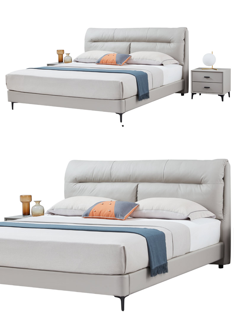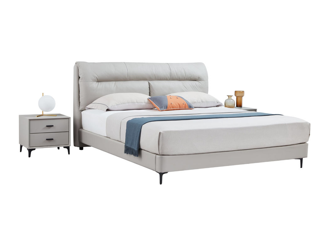 B系优选 现代简约 接触面真皮+高密度海绵+实木框架+钢木排骨架+碳素钢金属脚 1.8米软床+2个床头柜(价格不含高箱,如需定制请咨询客服)