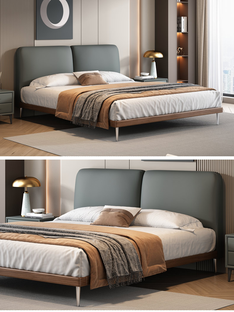 A系优选 现代简约 接触面头层牛皮真皮+实木框架+多层实木板+高回弹海绵+碳素钢五金脚+静音床板 浅绿色 1.8米床(价格不含高箱,如需定制请咨询客服)