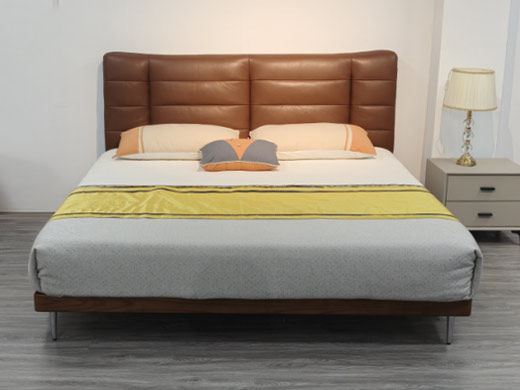 B系优选 现代简约 接触面头层牛皮+仿皮+高回弹海绵+实木框架+10分钢木排骨架+白蜡木床边 1.8米床¥5126