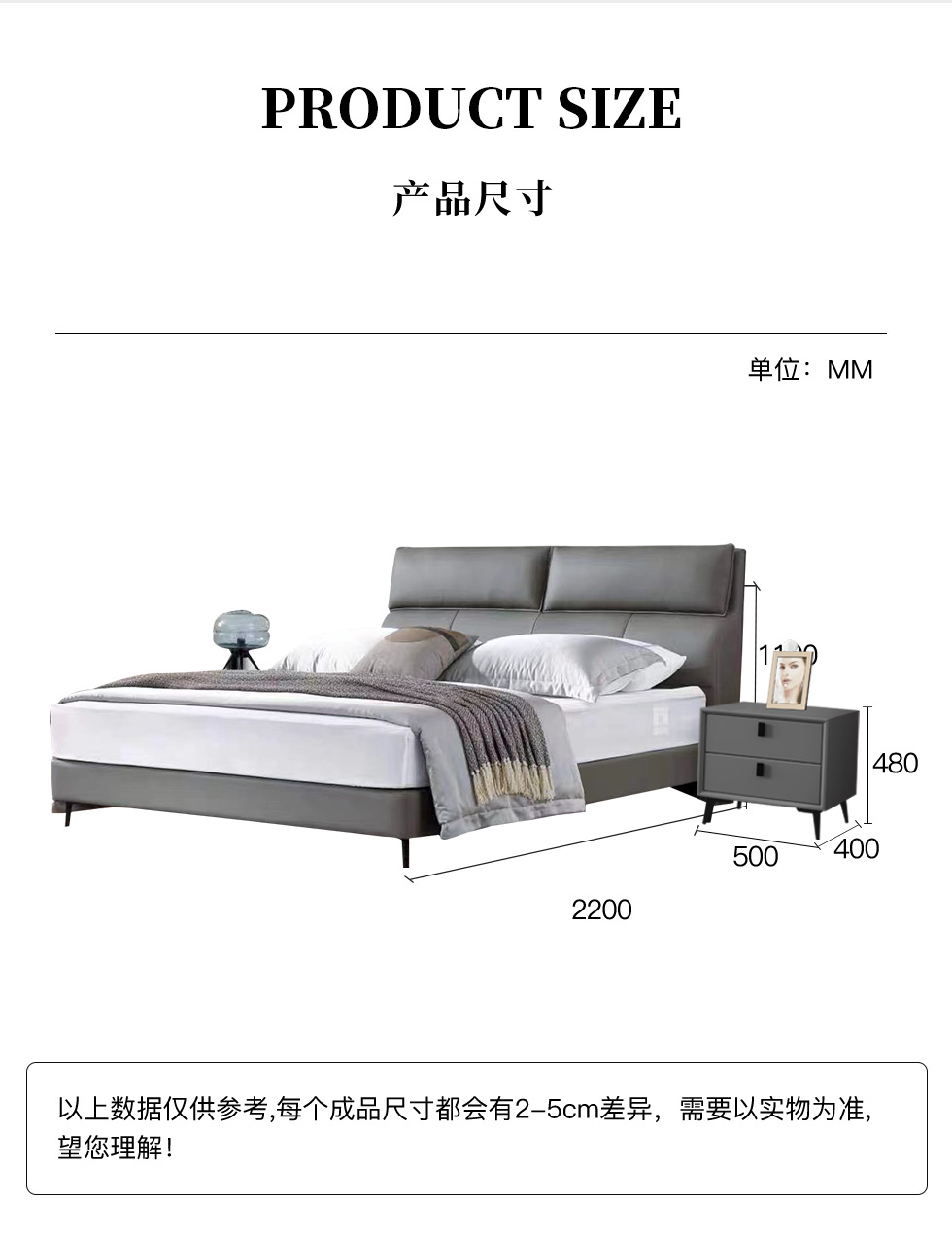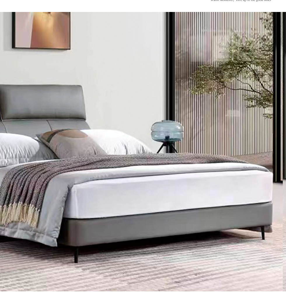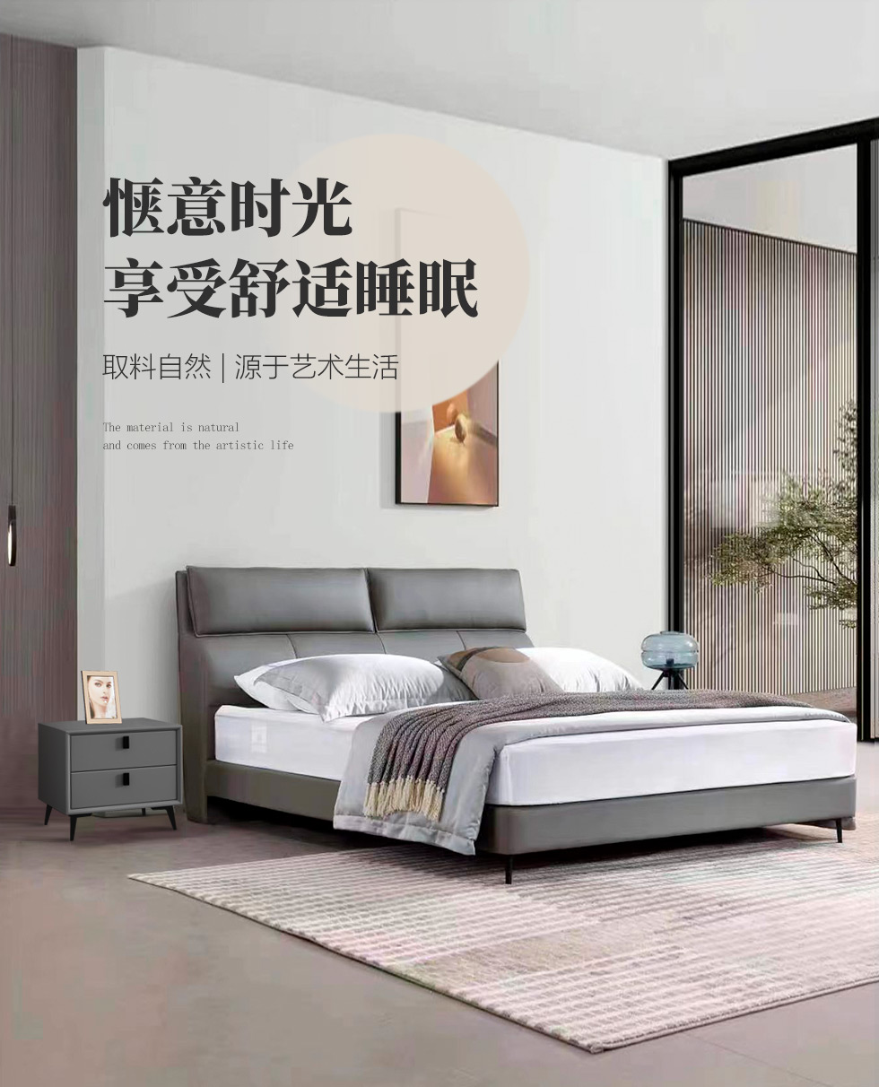 B系优选 现代简约 接触面真皮+高密度海绵+实木框架+钢木排骨架+碳素钢金属脚 1.8米软床+2个床头柜(价格不含高箱,如需定制请咨询客服)