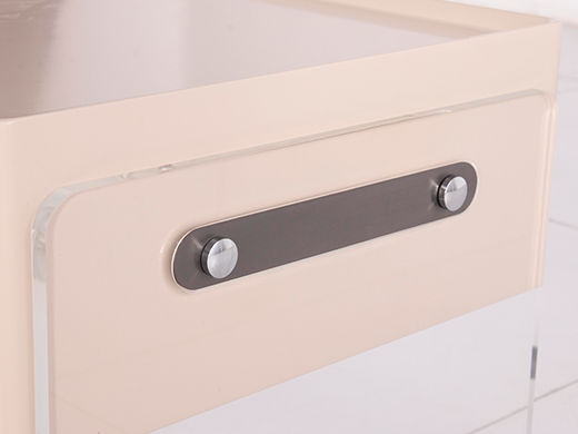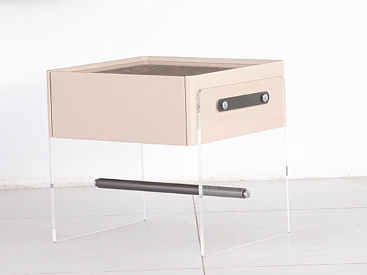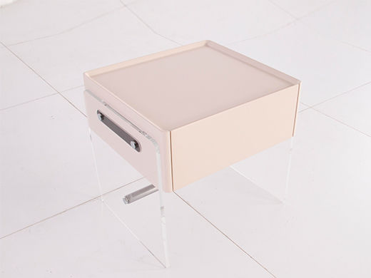 缔造极简 E1级高密度板烤漆+亚克力脚 +不锈钢灰钛+托底缓冲实木抽屉 米白色 床头柜1个