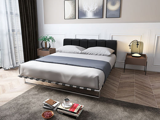 缔造 极简 岩板面+中纤板贴白蜡木皮做碳灰色+碳素钢喷哑黑色 碳灰 床头柜1个