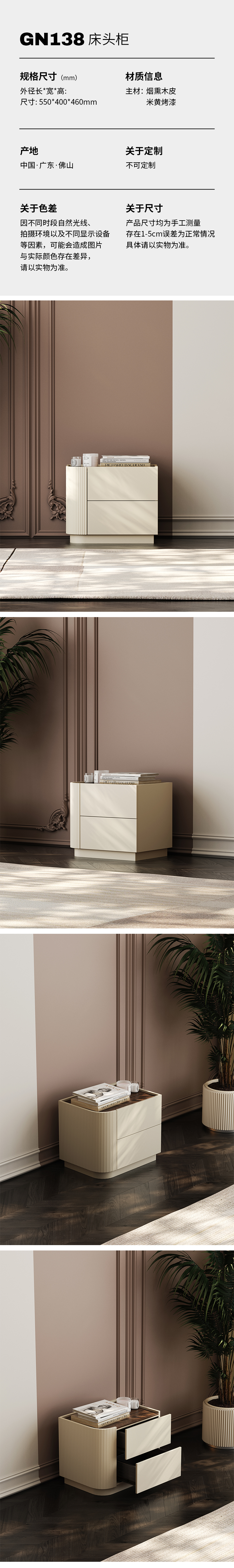 鹿屿 奶油风 烟熏木皮+米黄烤漆+环保中纤板E1板+贴皮 床头柜1个