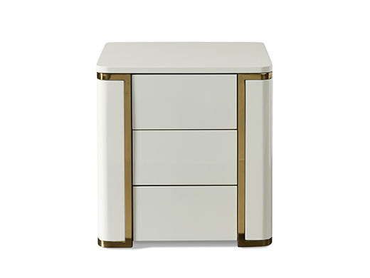 拜洛迪 轻奢 板木结合+白亮光油漆+五金拉丝香槟金不锈钢 亮光白 床头柜1个¥1165