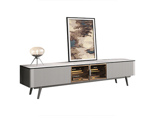 梵歌 现代简约 E1环保中纤板 三节滑珠导轨 6MM岩板石面 维多利亚灰 碳素钢五金架 浅灰白 电视柜